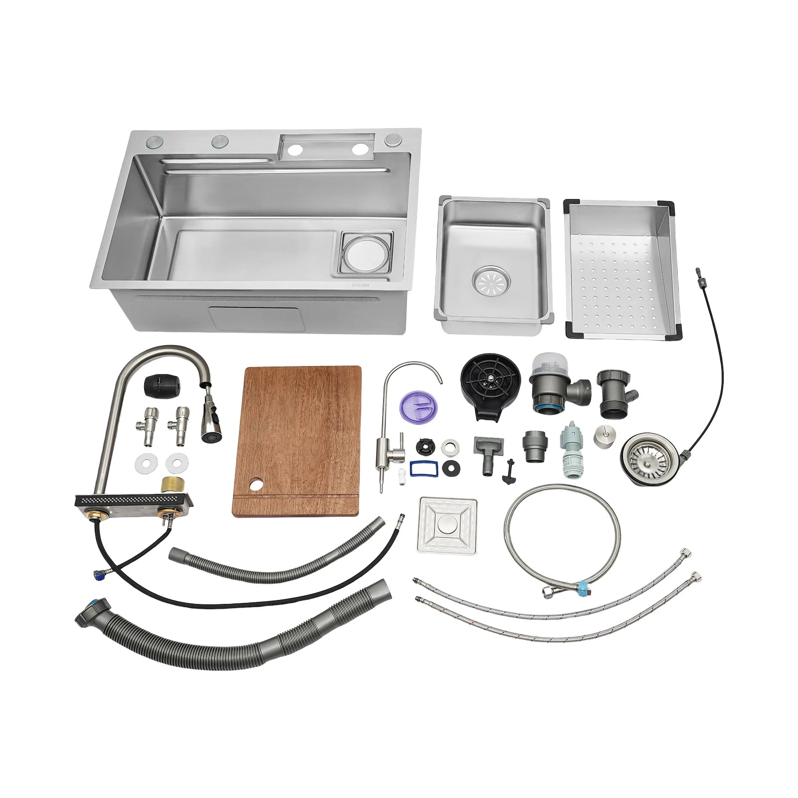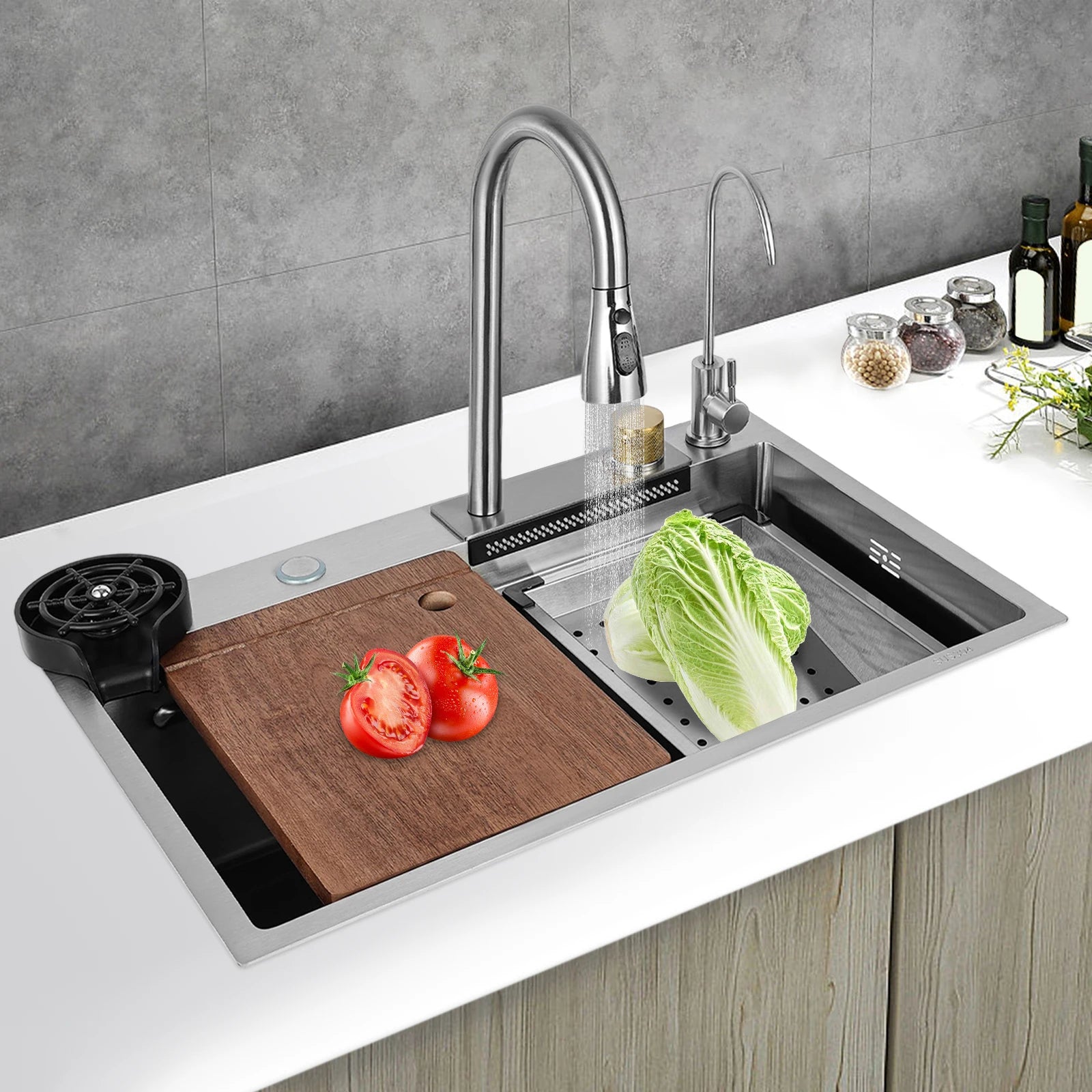Wasserfall-Bar-Waschbecken, Edelstahl-Waschbecken-Set, integriertes Waschbecken mit abnehmbarem Wasserhahn für Badezimmer, Bauernhöfe, Hinterhof