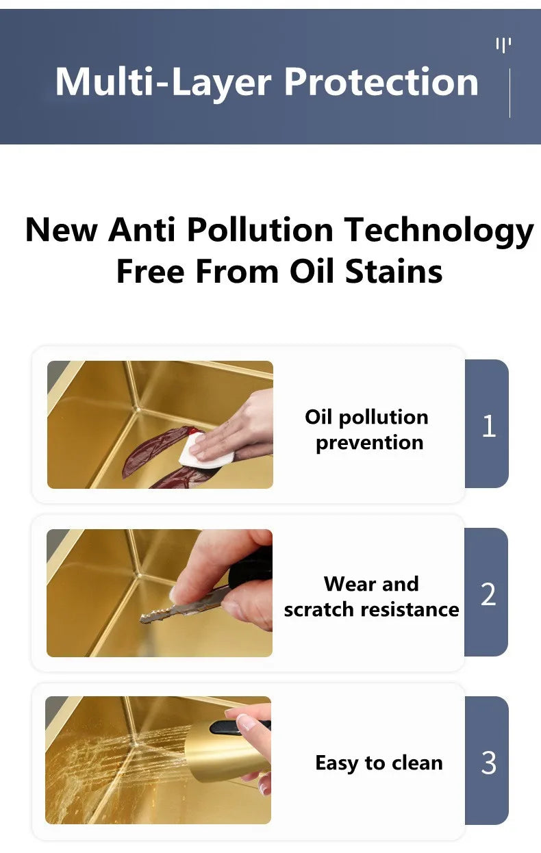 Wasserfall-Küchenspüle, Einzelschüssel, Küchenspülen, goldfarbenes Barspülbecken aus Edelstahl 304, mit Pull-Wasserhahn, Nano-Waschbecken für zu Hause
