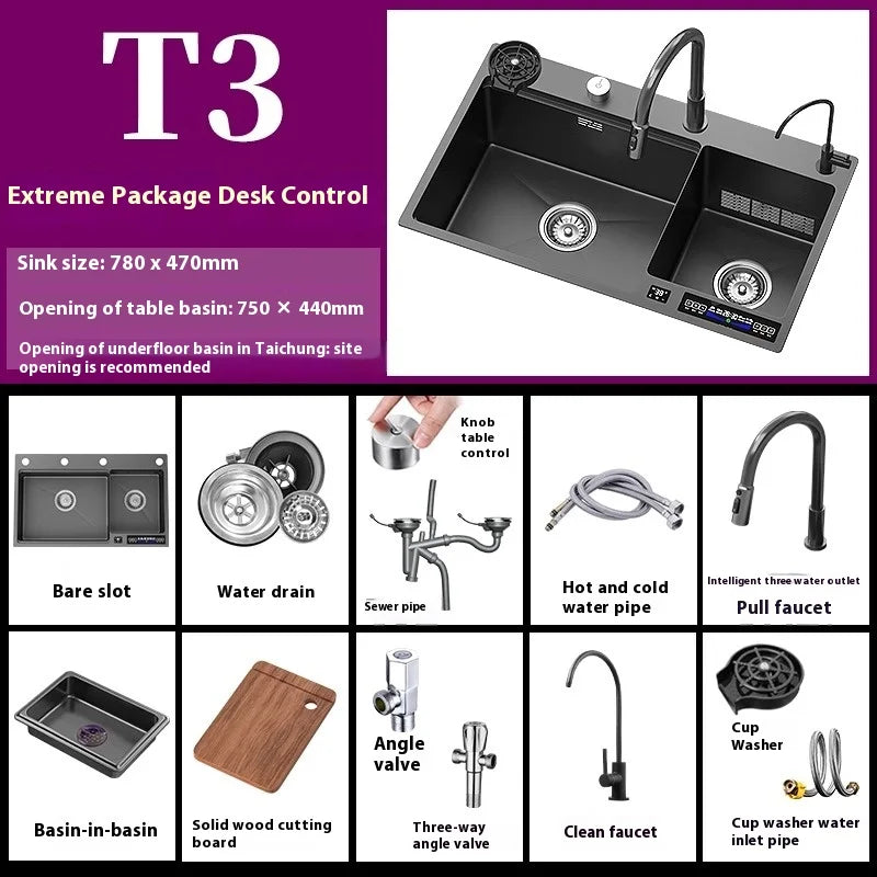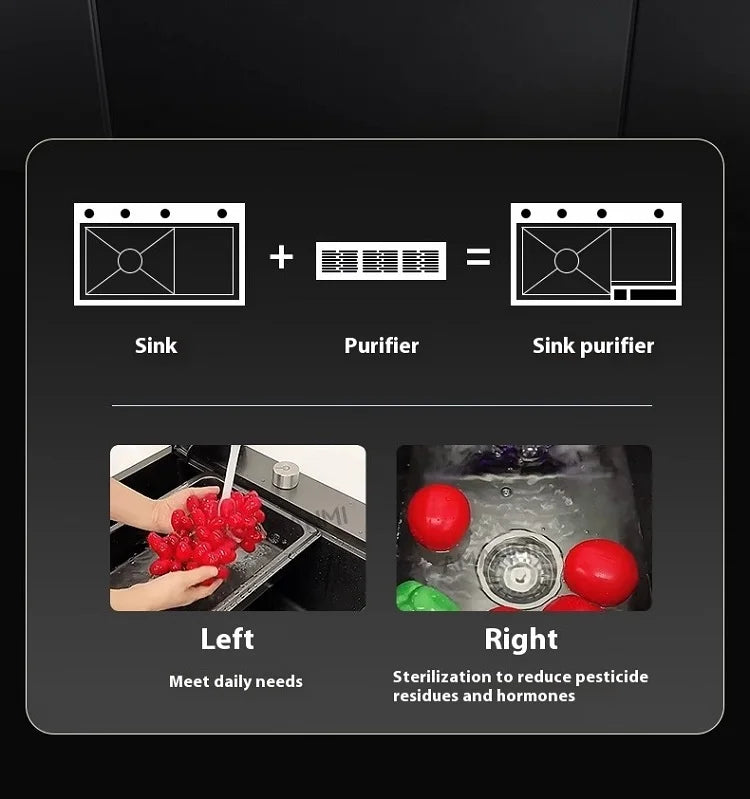 Water Catalyst Stainless Steel Kitchen Sink Multifunctional Smart Double slot Cleaning Ingredients Dishes Kitchen Sink