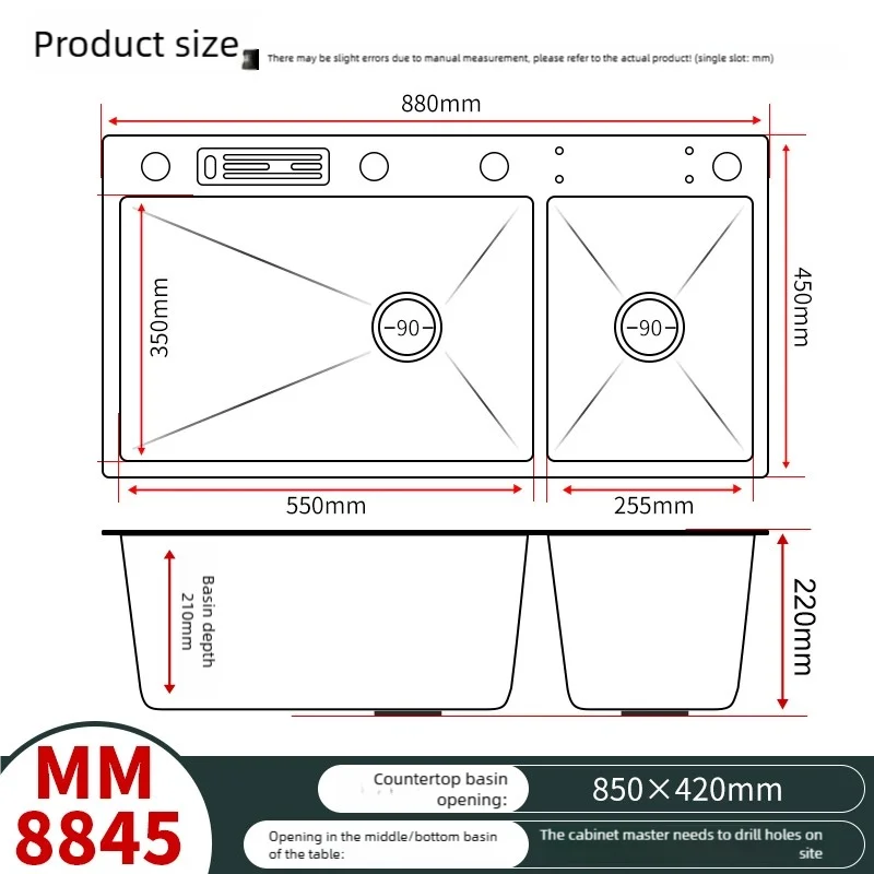 Waterfall Kitchen Sink Stainless Steel Large Double Slot With Chopping Board Rack Knife Holder Multifunctional Dishwash Basin