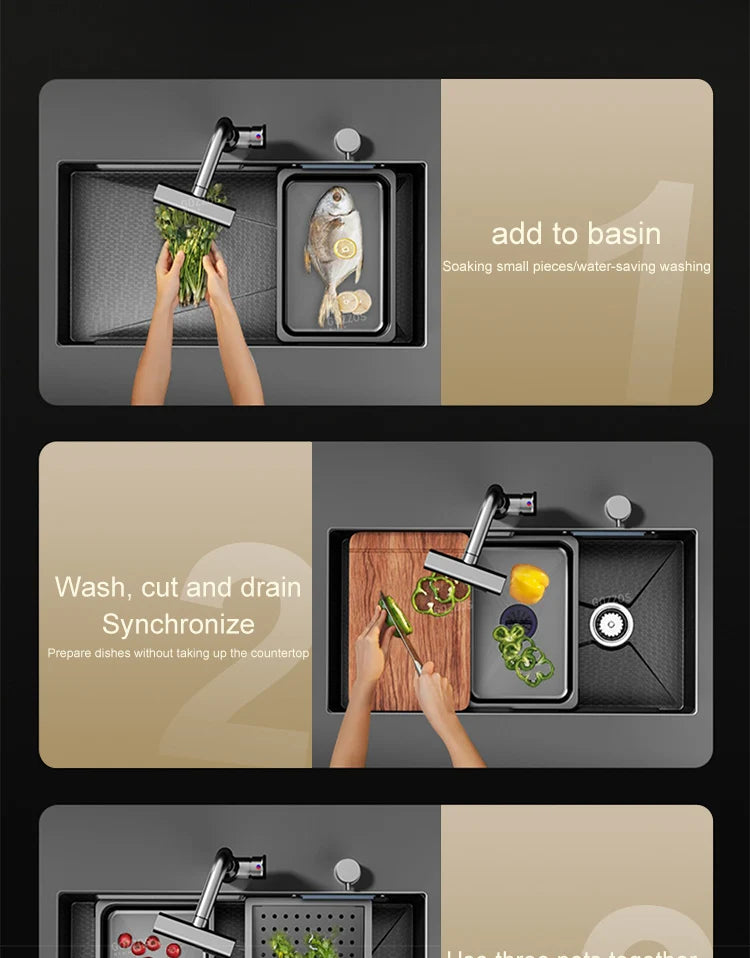 Waterfall Sink Large Single Slot Stainless Steel Kitchen Sink Embossed Washbasin Under The Basin Installation For Kitchen