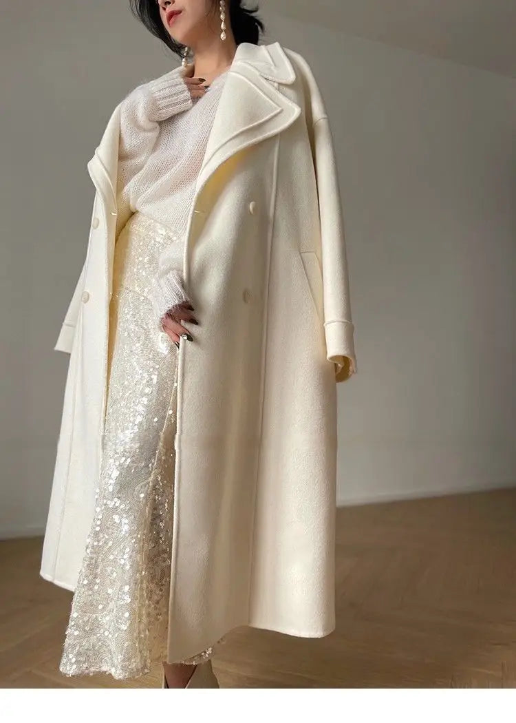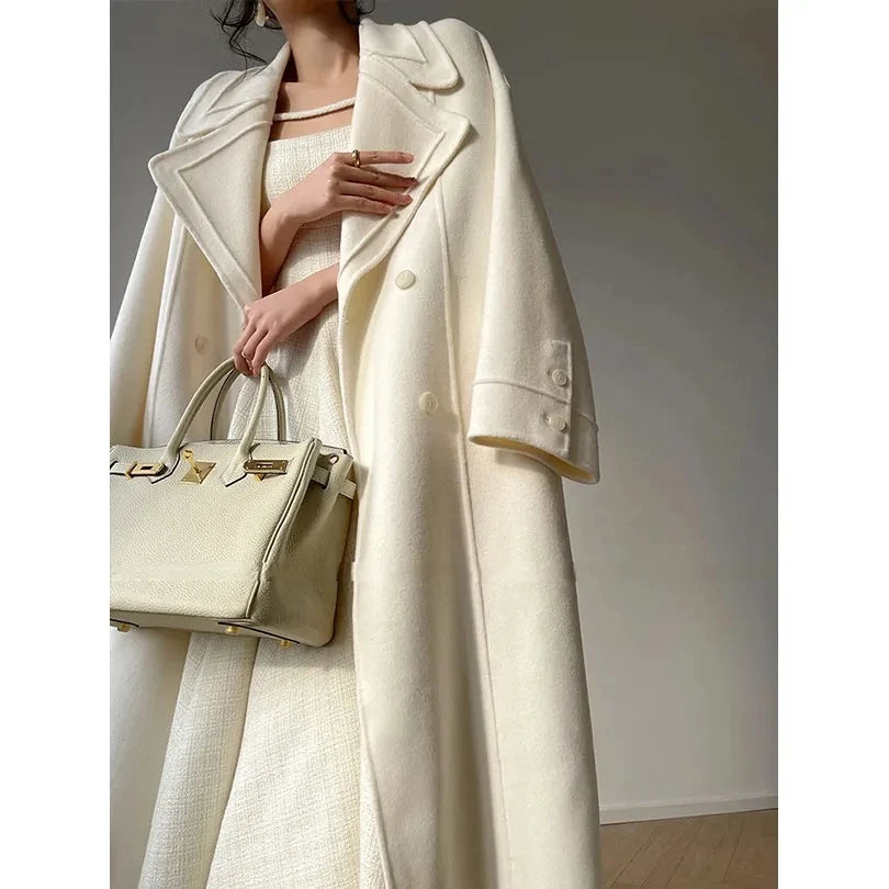 Weißer Mantel im französischen Stil, High-End-Temperament, Herbst-Winter, langer Wollmantel, 2025, neuer Damen-Wollmantel, modische lose Oberbekleidung