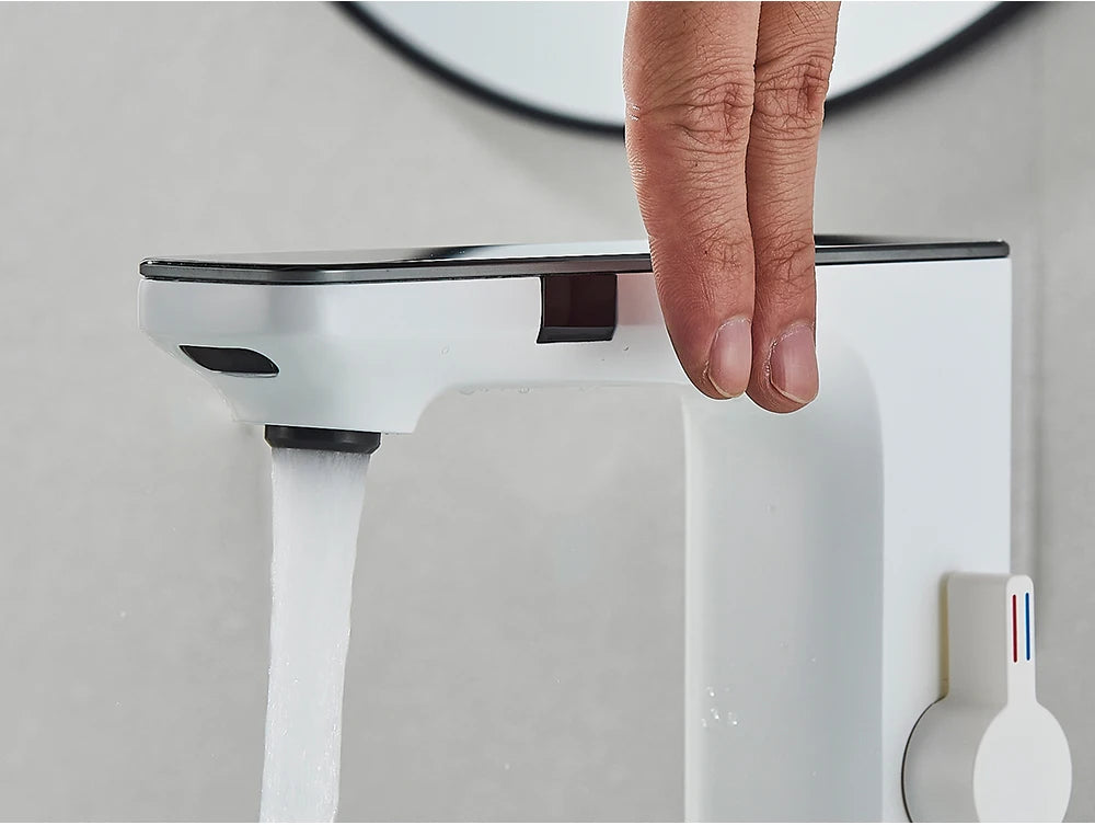 White Smart Sensor Basin Faucet Screen Digital Display Hot Cold Water Mixer Tap Touchless Vanity Sink Faucet For Bathroom