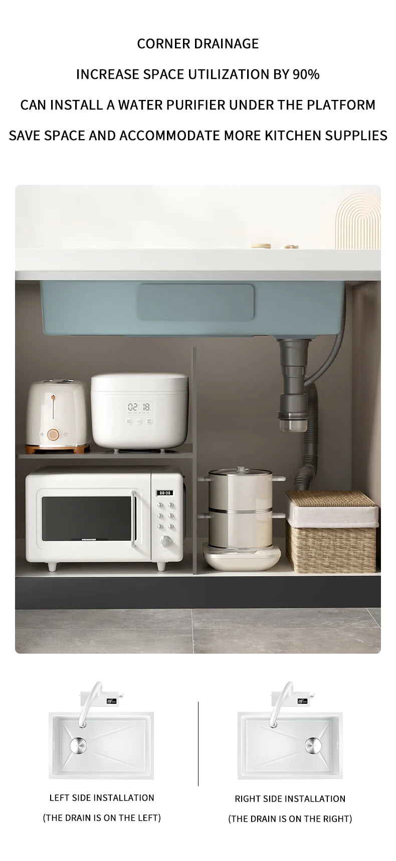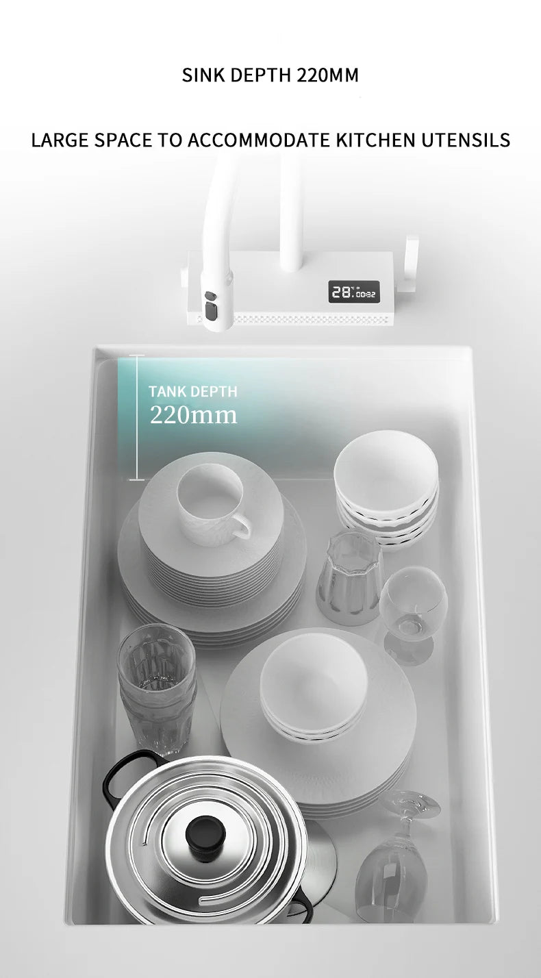 White Stainless Steel Kitchen Sink with Digital Display Multifunction Waterfall Faucet large Wash Basin for Kitchen Accessories