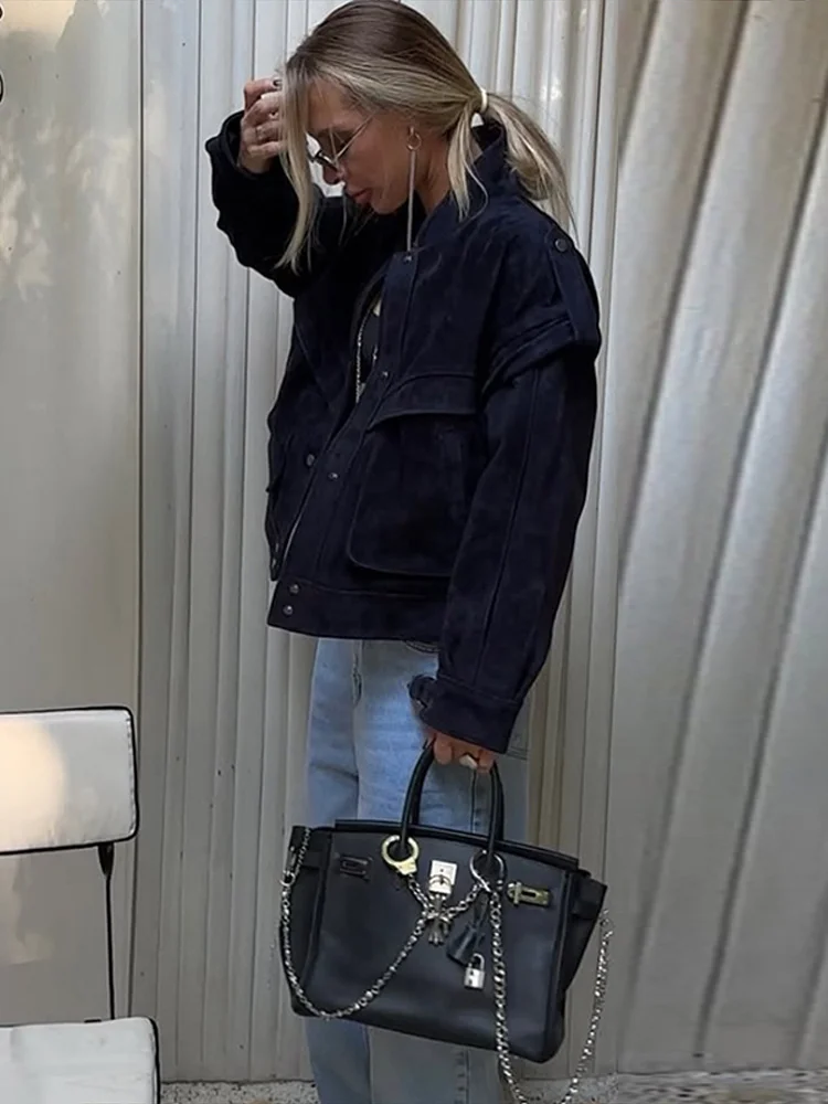 - **Farbe**:Reichhaltiges braunes Wildleder – verleiht Ihrem Look Wärme und ein luxuriöses Gefühl.