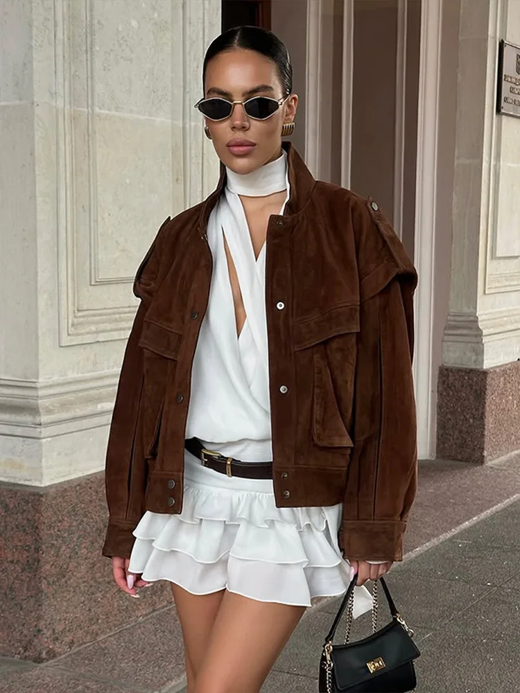 🛍️ Braune Übergroße Jacke aus Wildleder