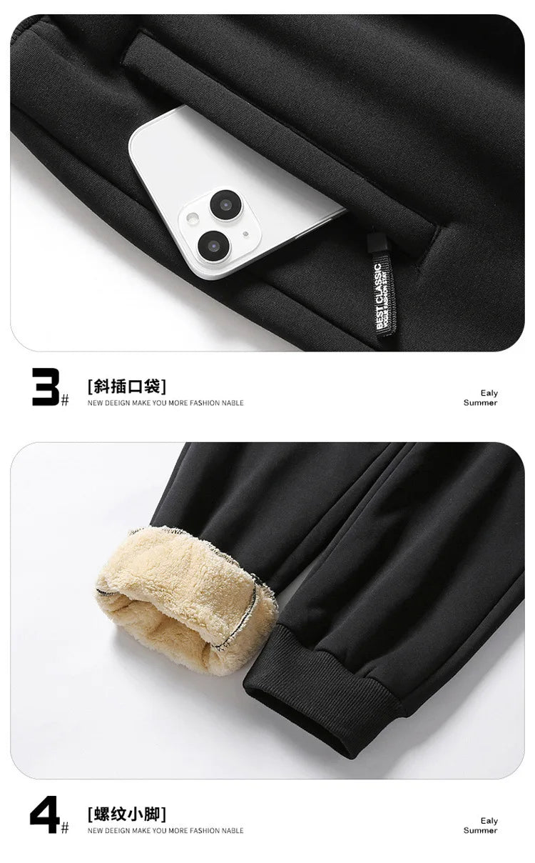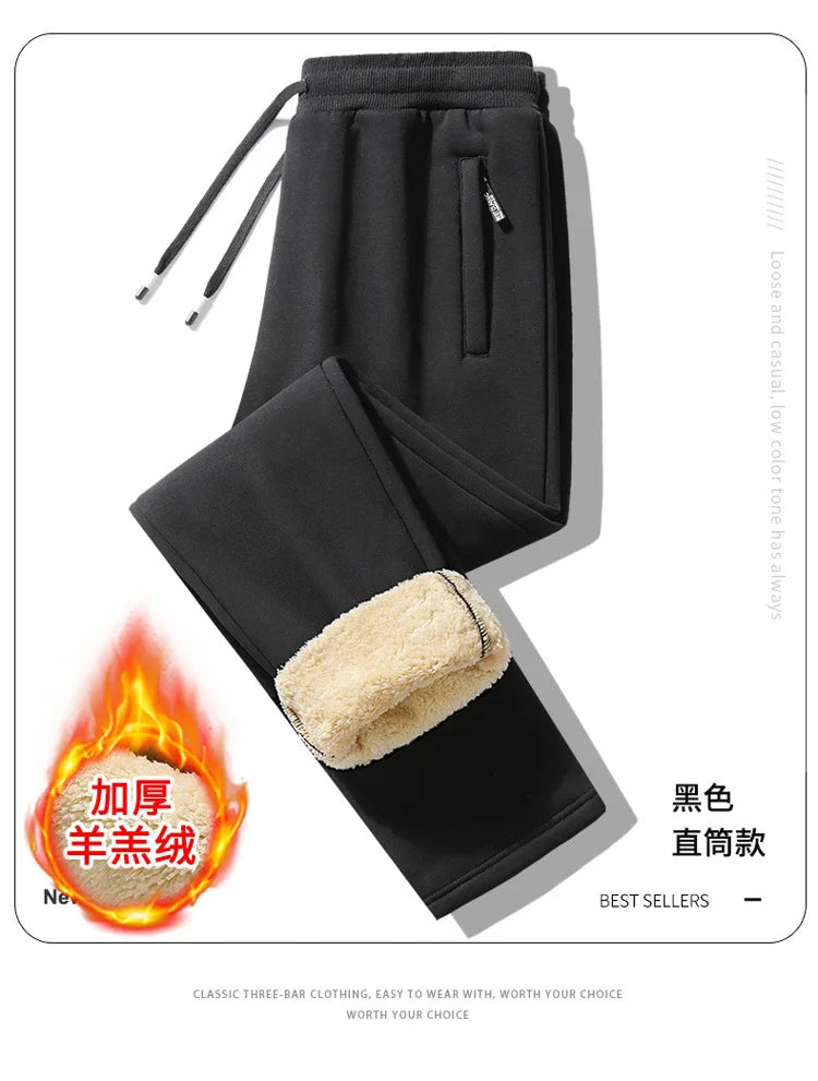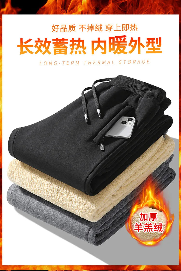 Winter Men's Cotton Fleece-Lined Sweatpant Men Plush Thick Lambswool Thermal Drawstring Trousers Casual Comfortable Sports Pants
