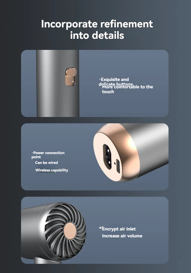 Wireless charging hair dryer for household use, high-speed negative ion hair dryer, high-power bladeless hair care, quick drying