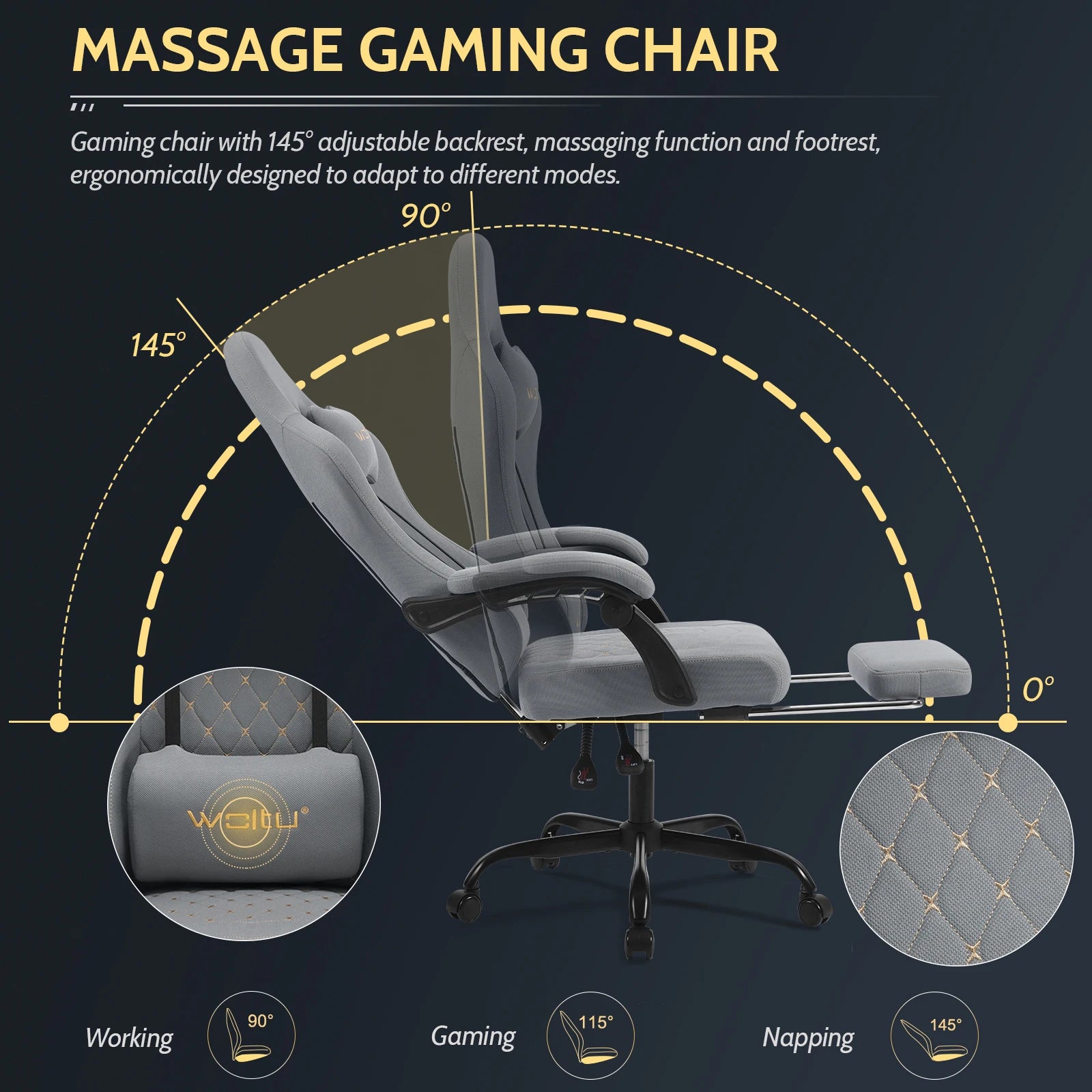 WOLTU Computer-Gamer-Stuhl, ergonomischer drehbarer PC-Gaming-Stuhl mit Taschenfederkissen, Massagefunktion für Büro und Zuhause
