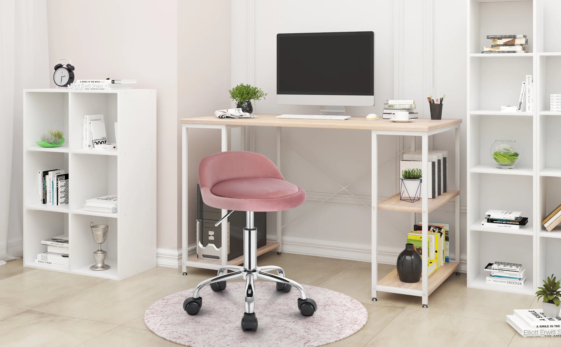 WOLTU Drehbarer Bürostuhl mit Rollen, höhenverstellbarer Computerstuhl mit niedriger Rückenlehne, Arbeitsrolle, Rocker-Schminkhocker