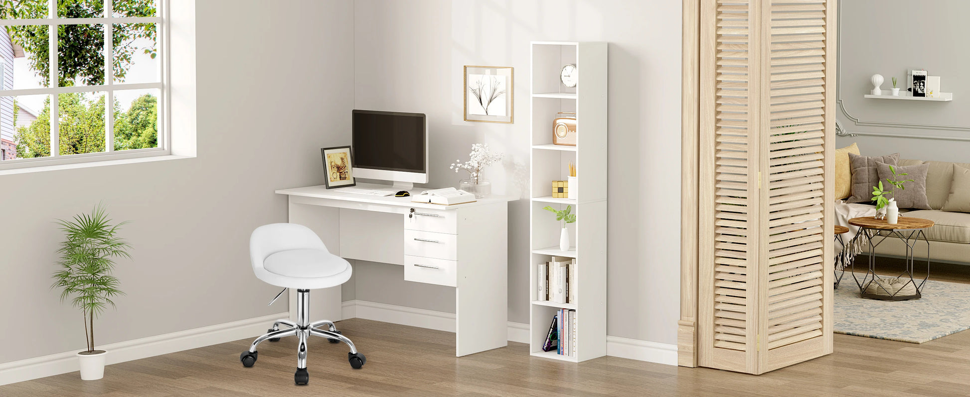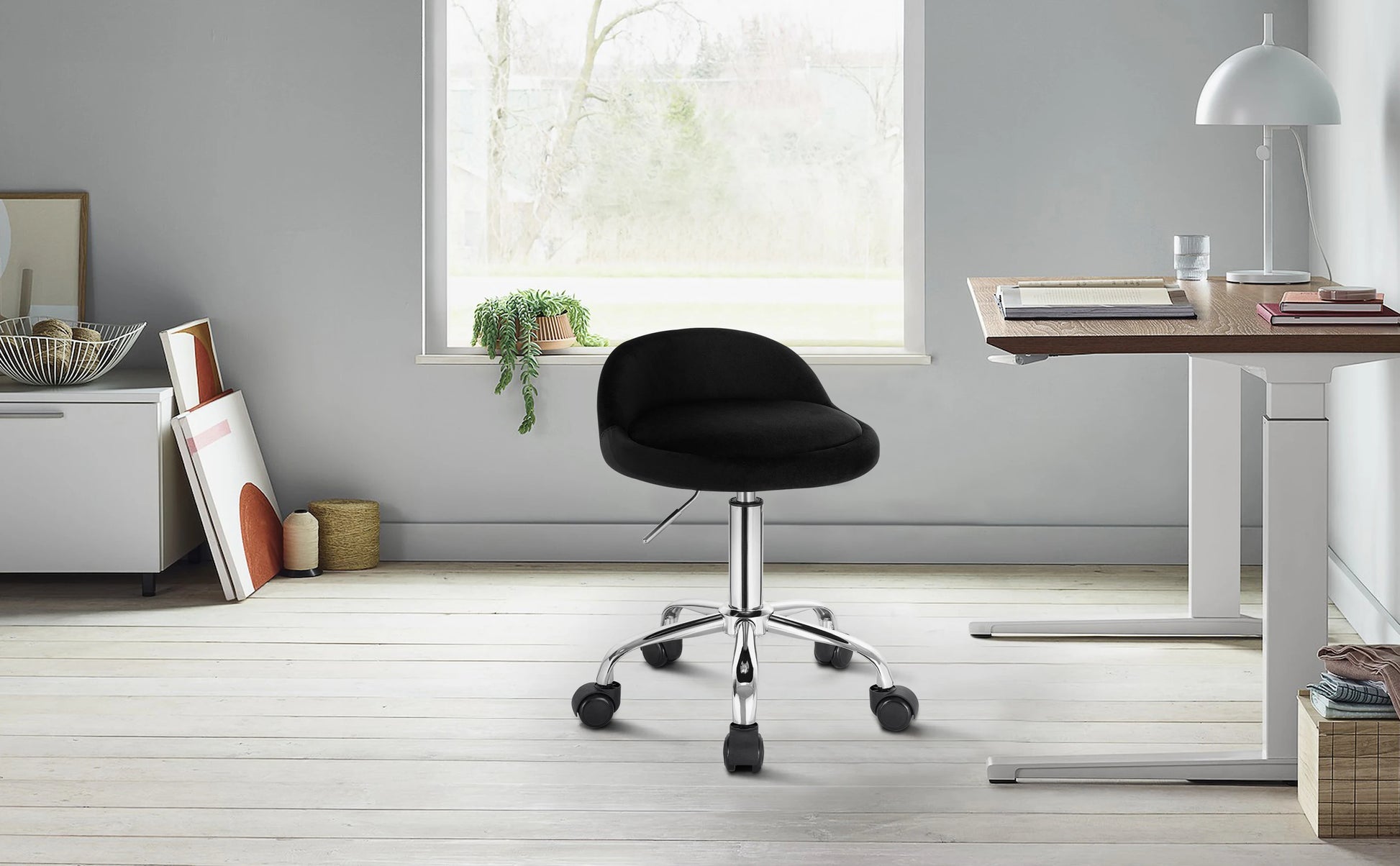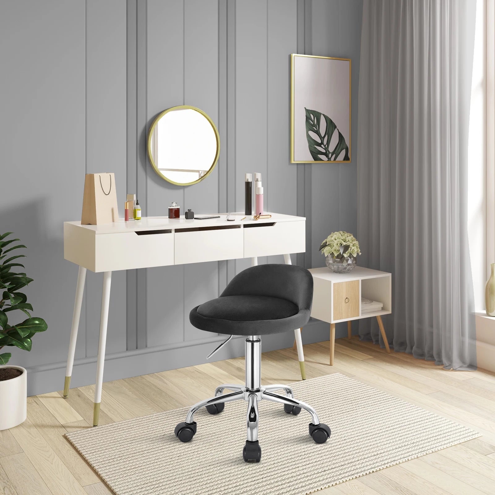 WOLTU Drehbarer Bürostuhl mit Rollen, höhenverstellbarer Computerstuhl mit niedriger Rückenlehne, Arbeitsrolle, Rocker-Schminkhocker