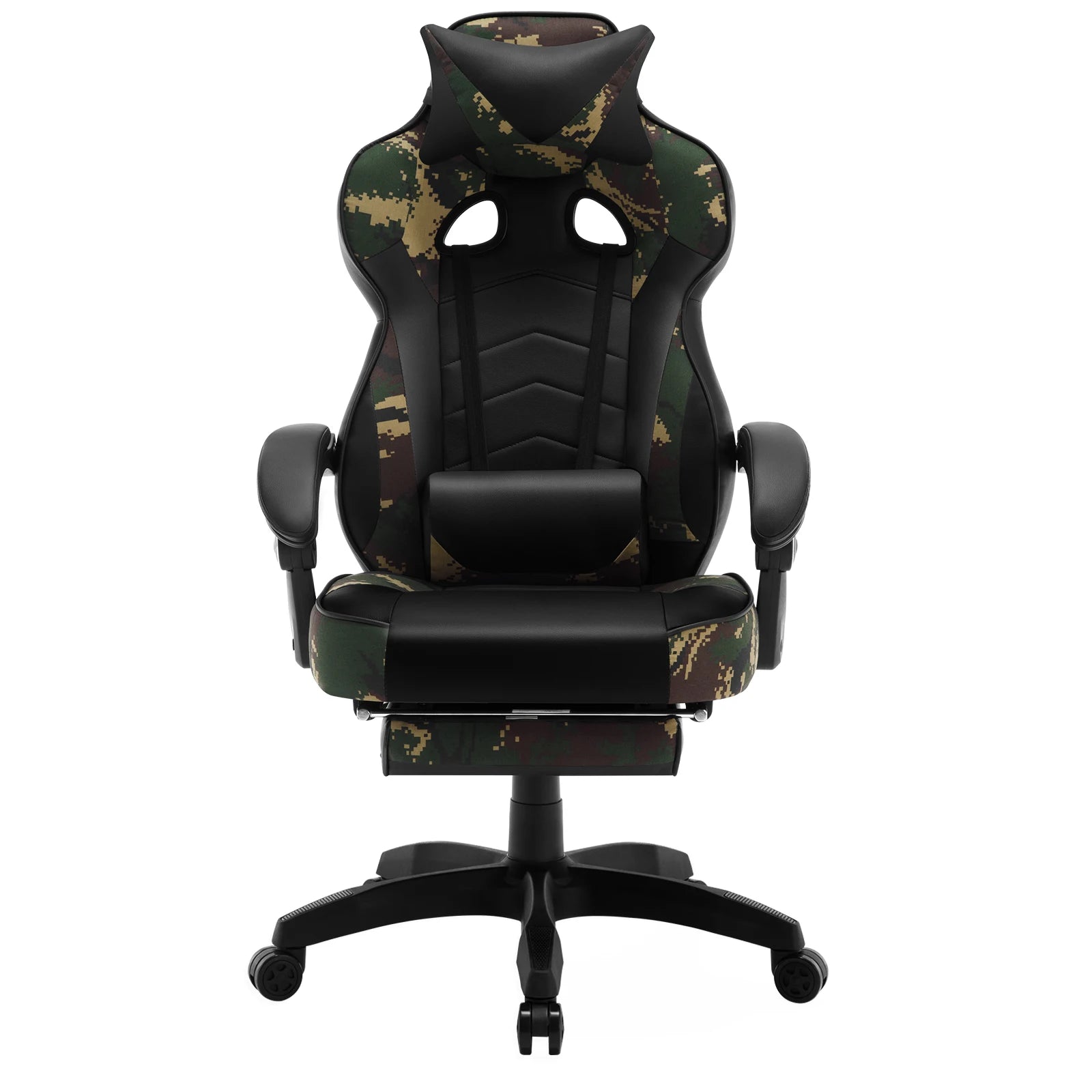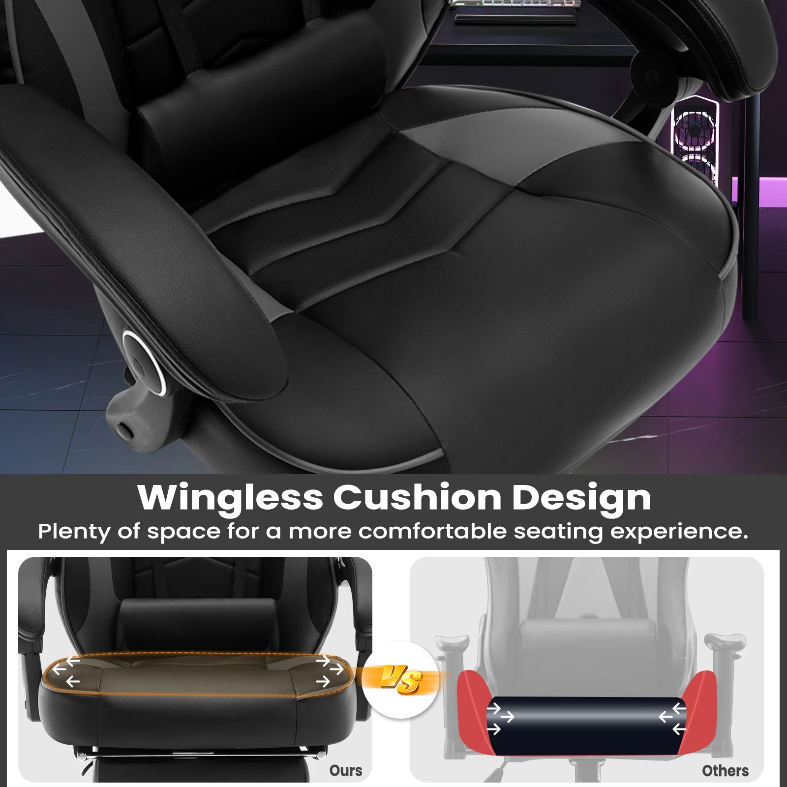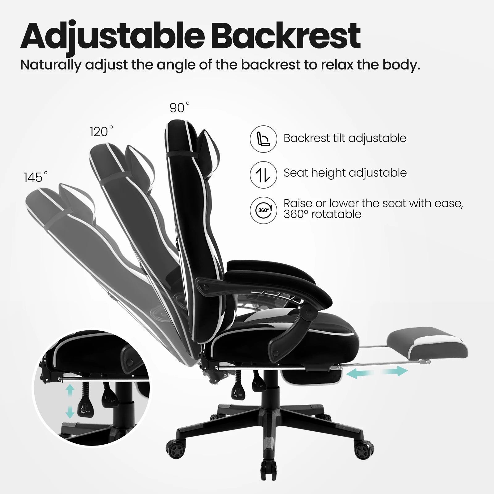 WOLTU Drehbarer Gaming-Rennstuhl, Schreibtisch, Büro, Computerstuhl, Sportsitz mit Kopfstütze, Lendenkissen, Fußstütze, Gamer-Stuhl