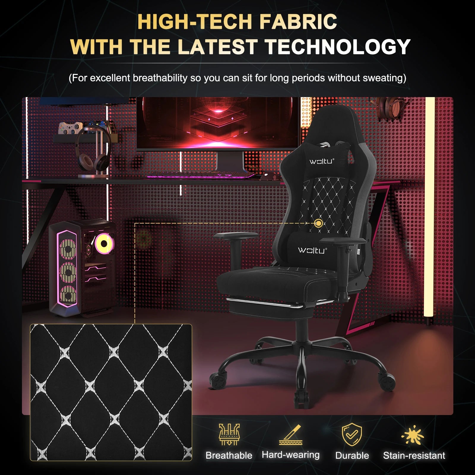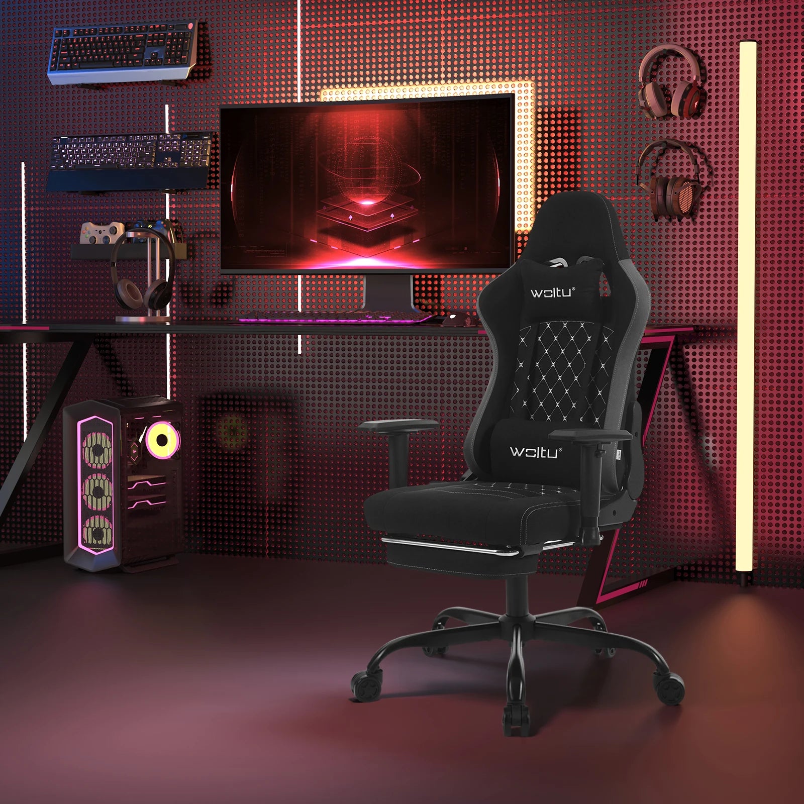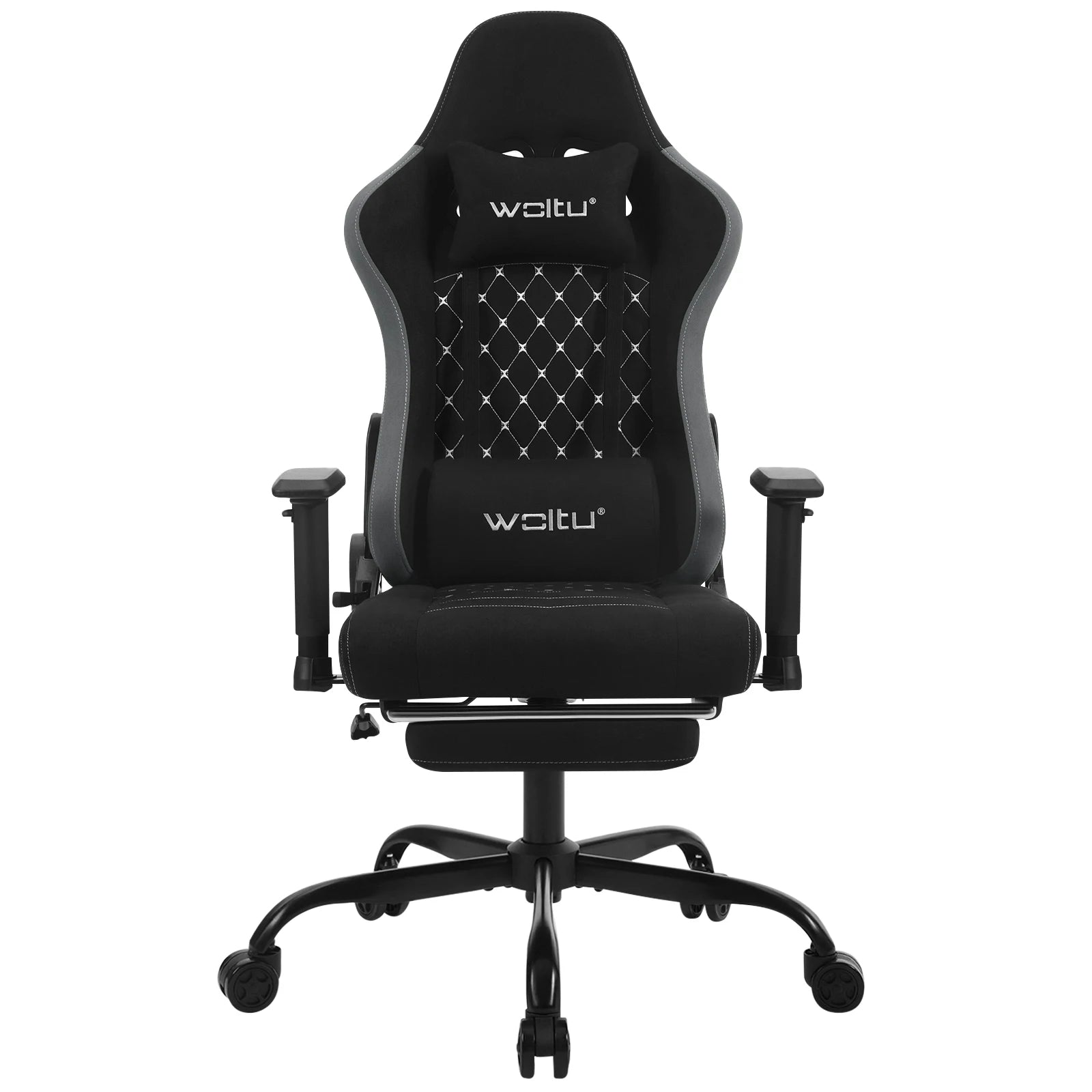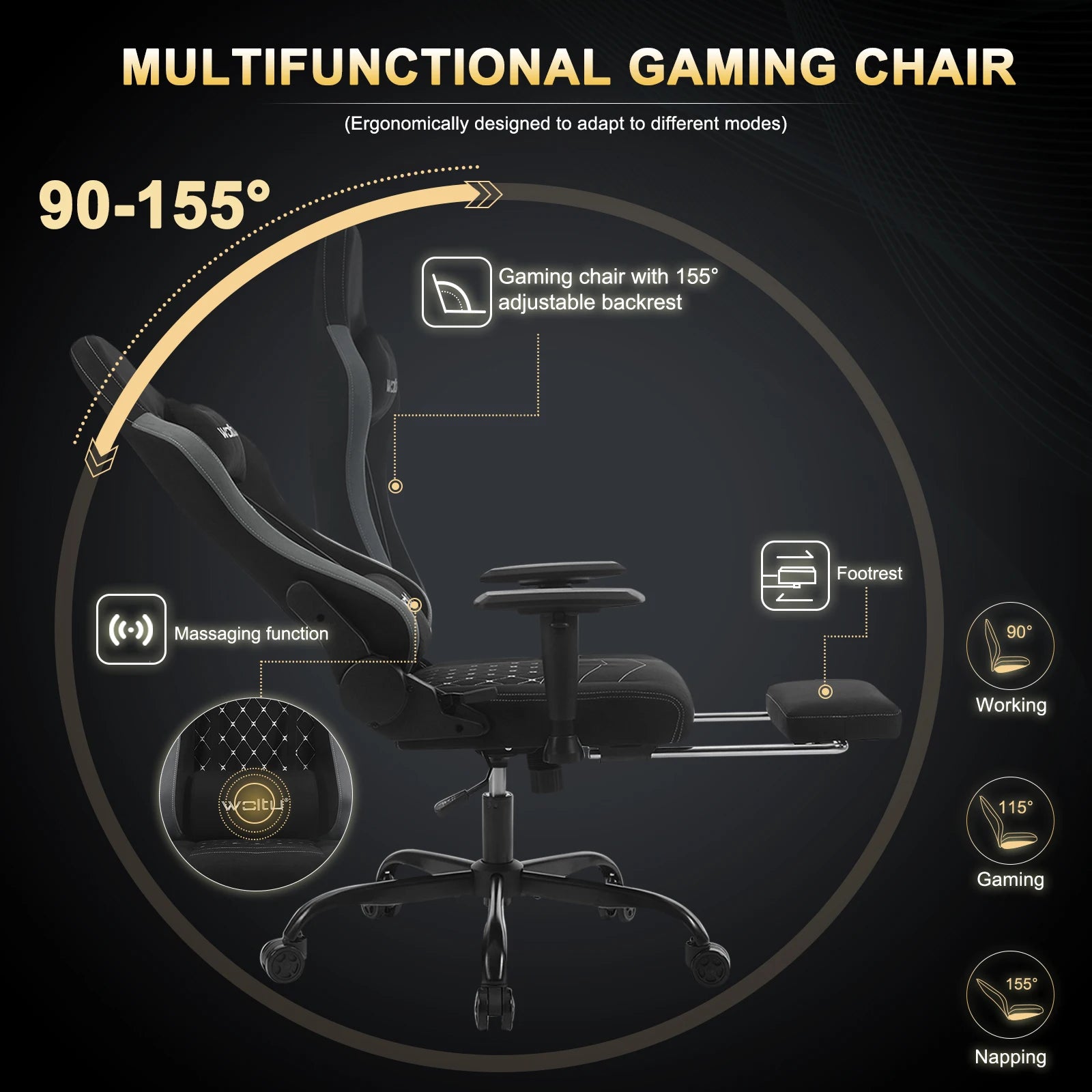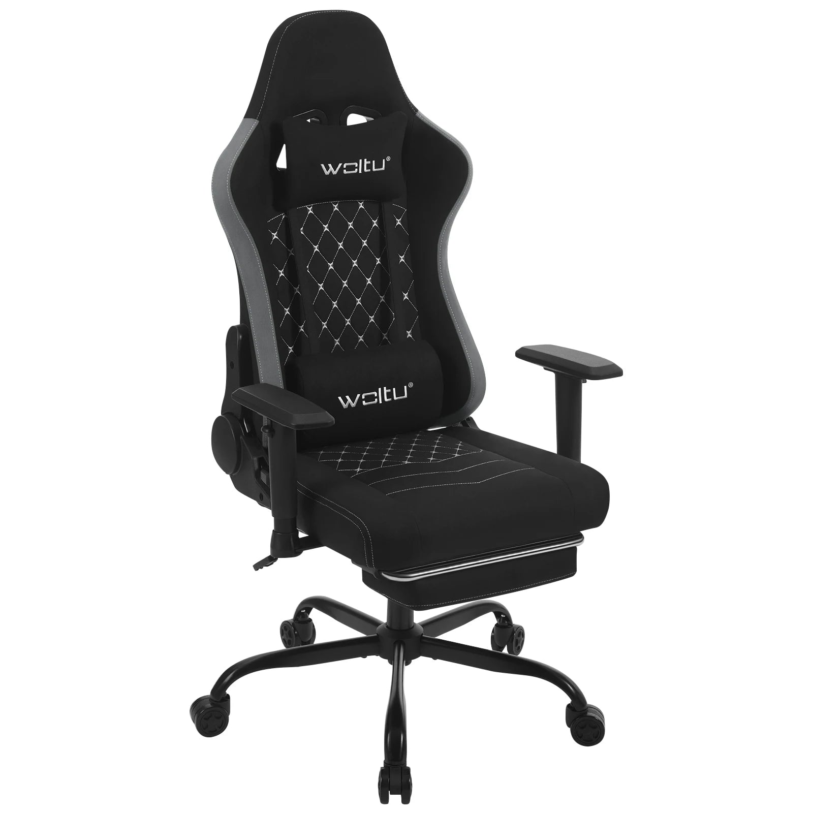 WOLTU Drehbarer Massage-Computer-Gaming-Stuhl, ergonomischer Racing-Gamer-Bürostuhl mit Rollen, Kopfstütze, Fußstütze, Lendenkissen