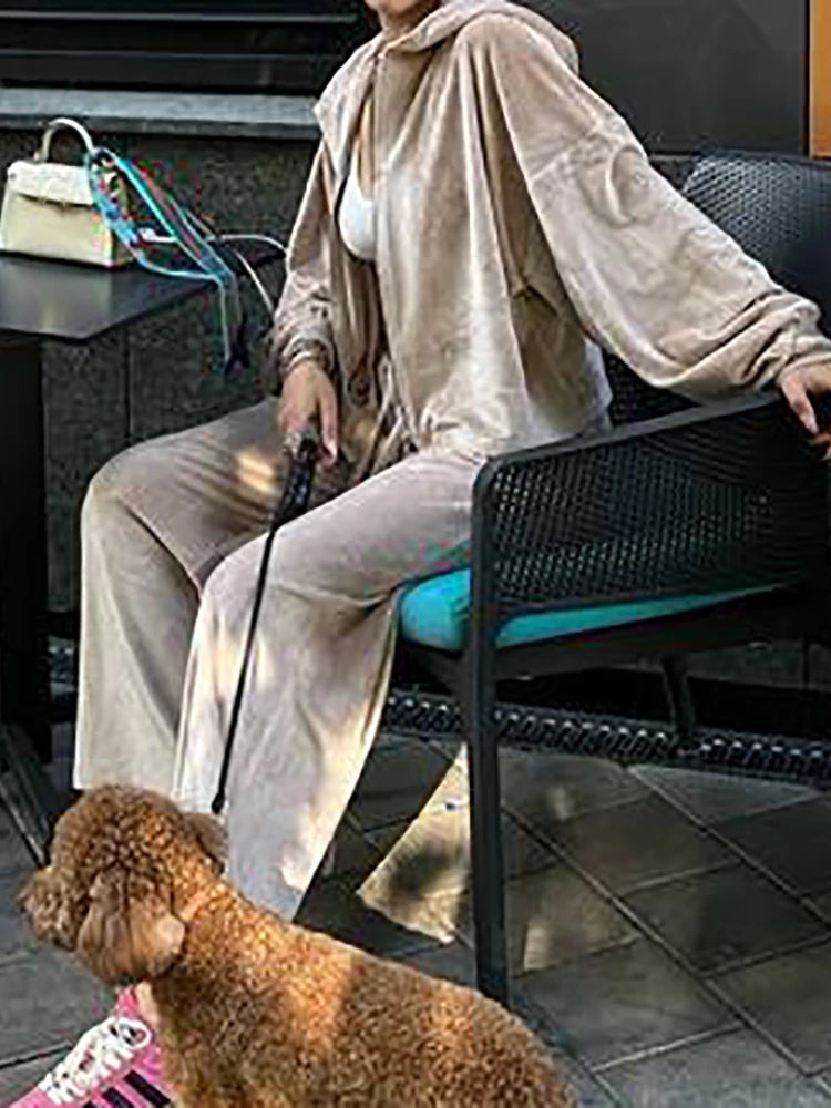 Women Autumn Hooded Coat Two Pieces Sets, Solid Patchwork Wide Leg Pants Chic Outfit, New Long Sleeve Casual Simple Ladies Suits
