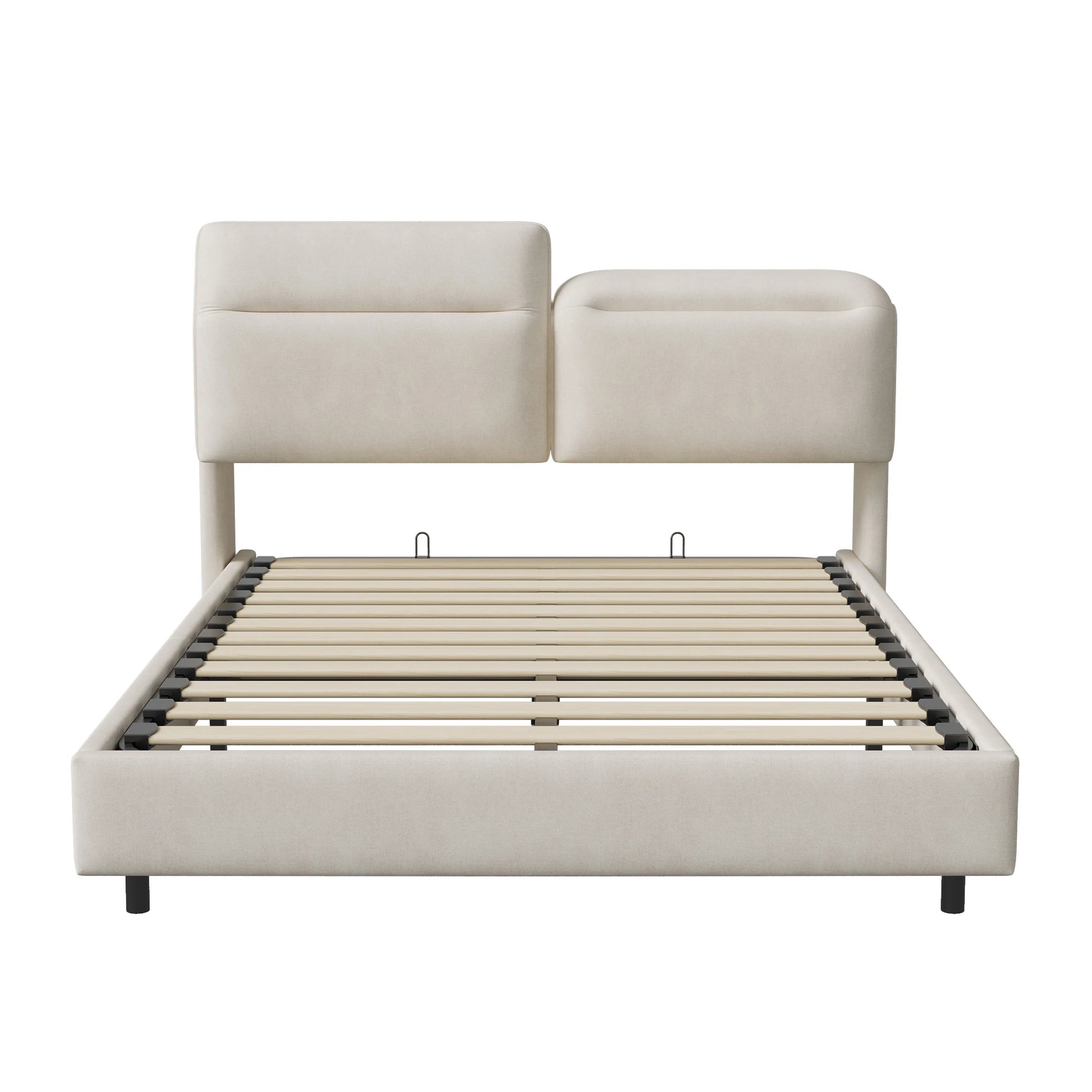 WoodenAura Bett 160 x 200 cm mit Lattenrost, Bett 160x200 cm mit Stauraum und Kopfteil, Bett mit LED-Beleuchtung und Stauraum