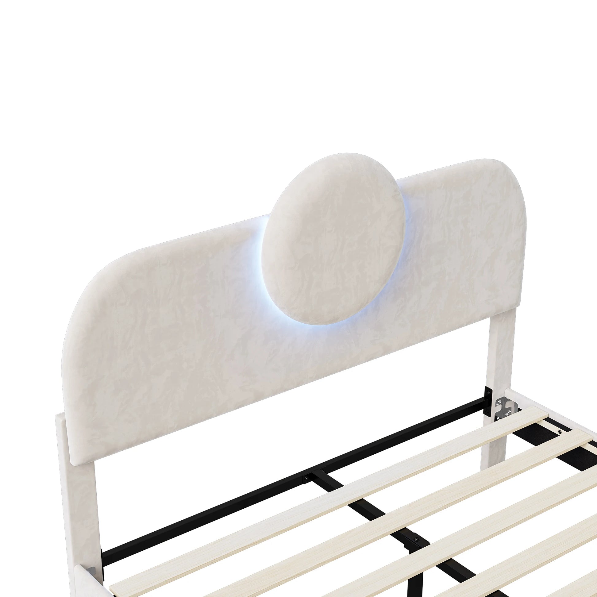 WoodenAura Gepolstertes Doppelbett, 140 x 200 cm mit LED, gepolstertes Bettgestell mit verstellbarem Kopfteil und Lattenrost