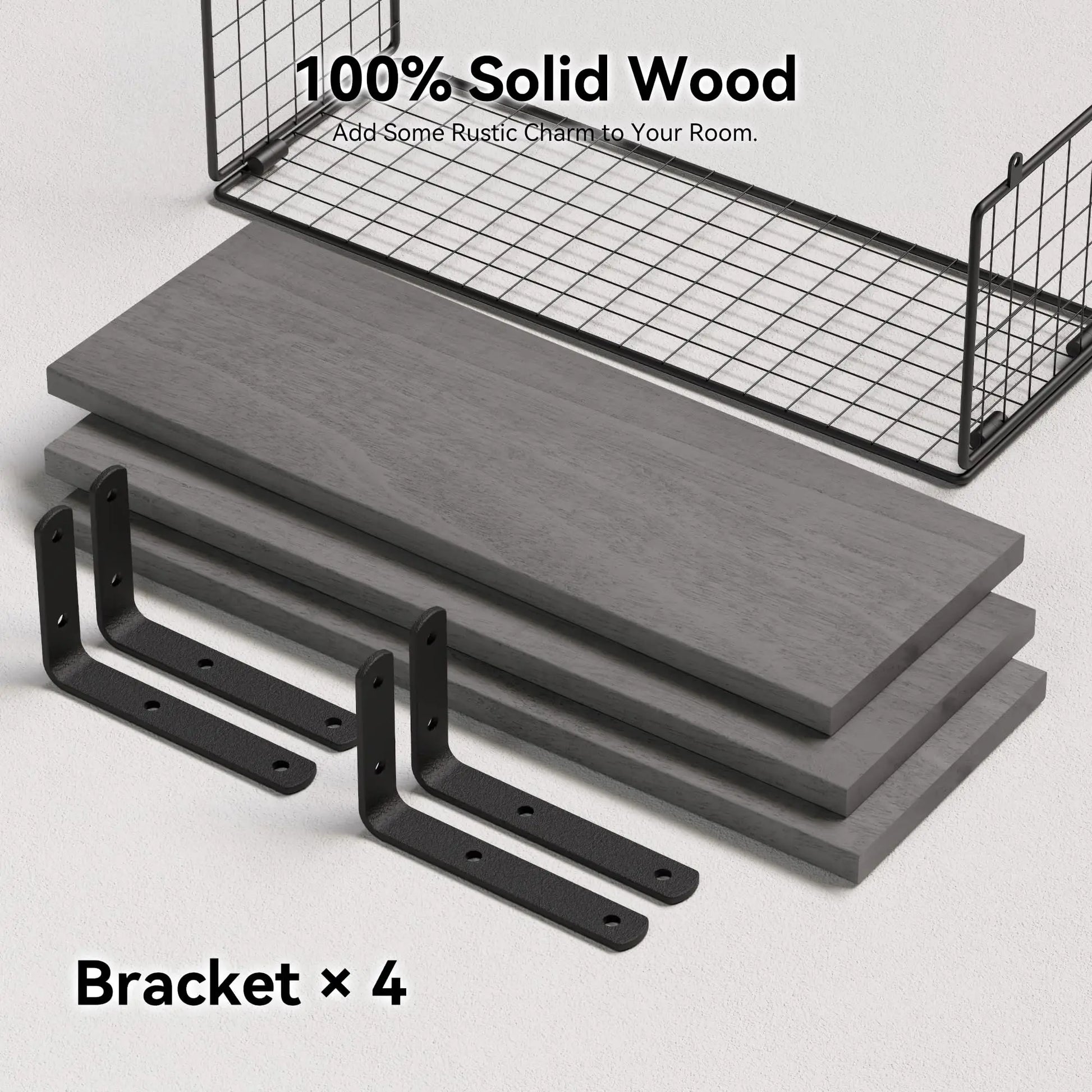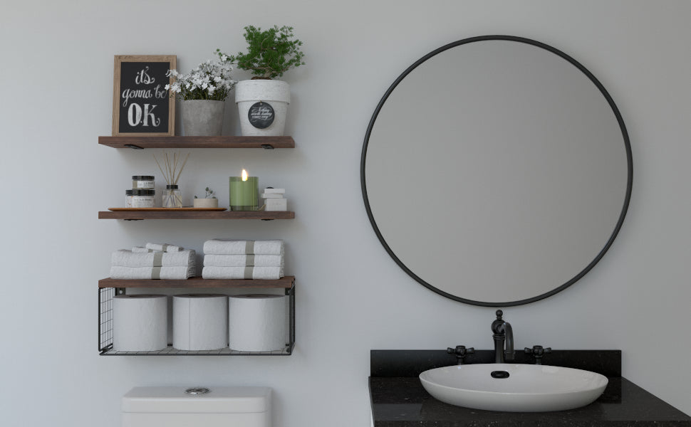 WOPITUES Bathroom Shelf Over Toilet, Floating Bathroom Shelf Wall Mounted with Wire Basket, Floating Shelf for Wall Décor-Rustic