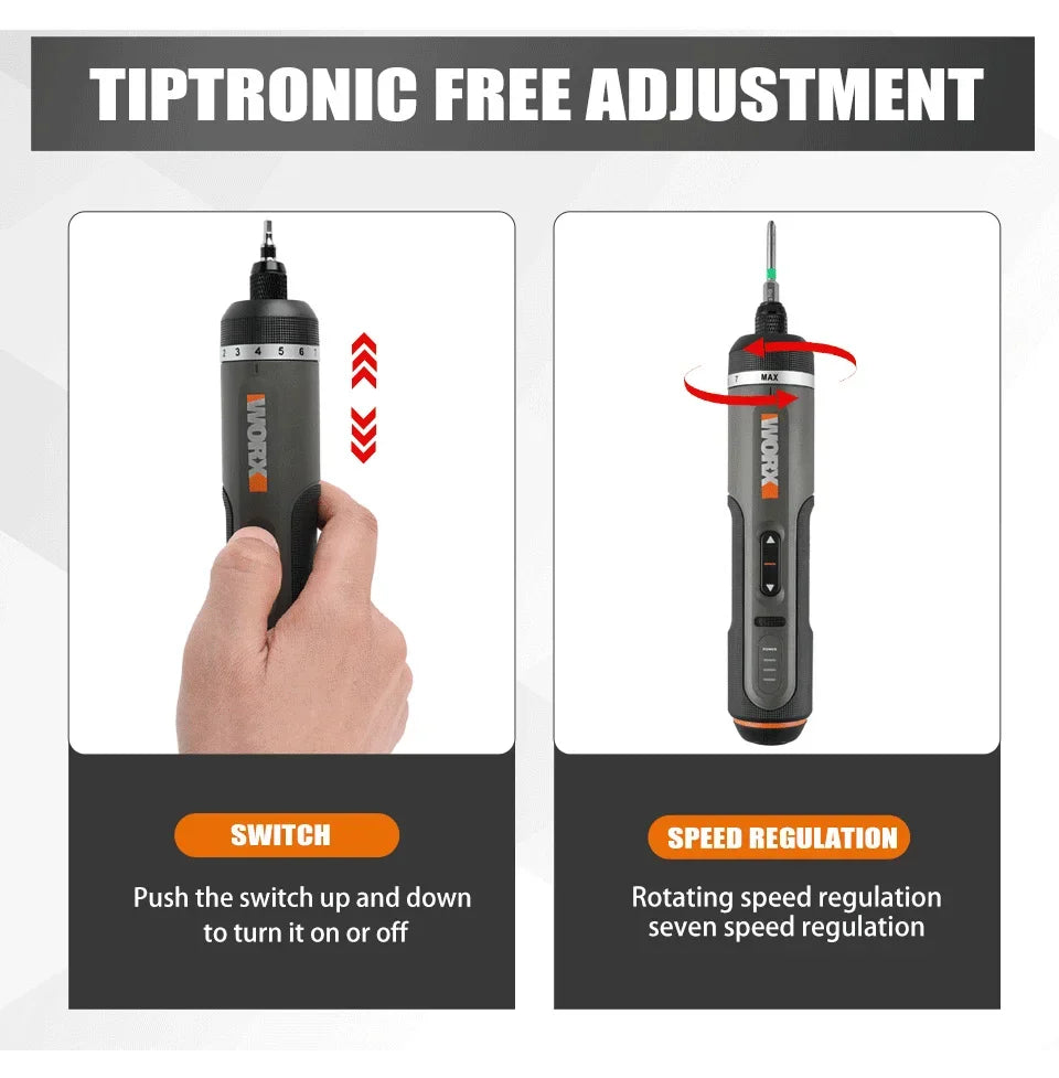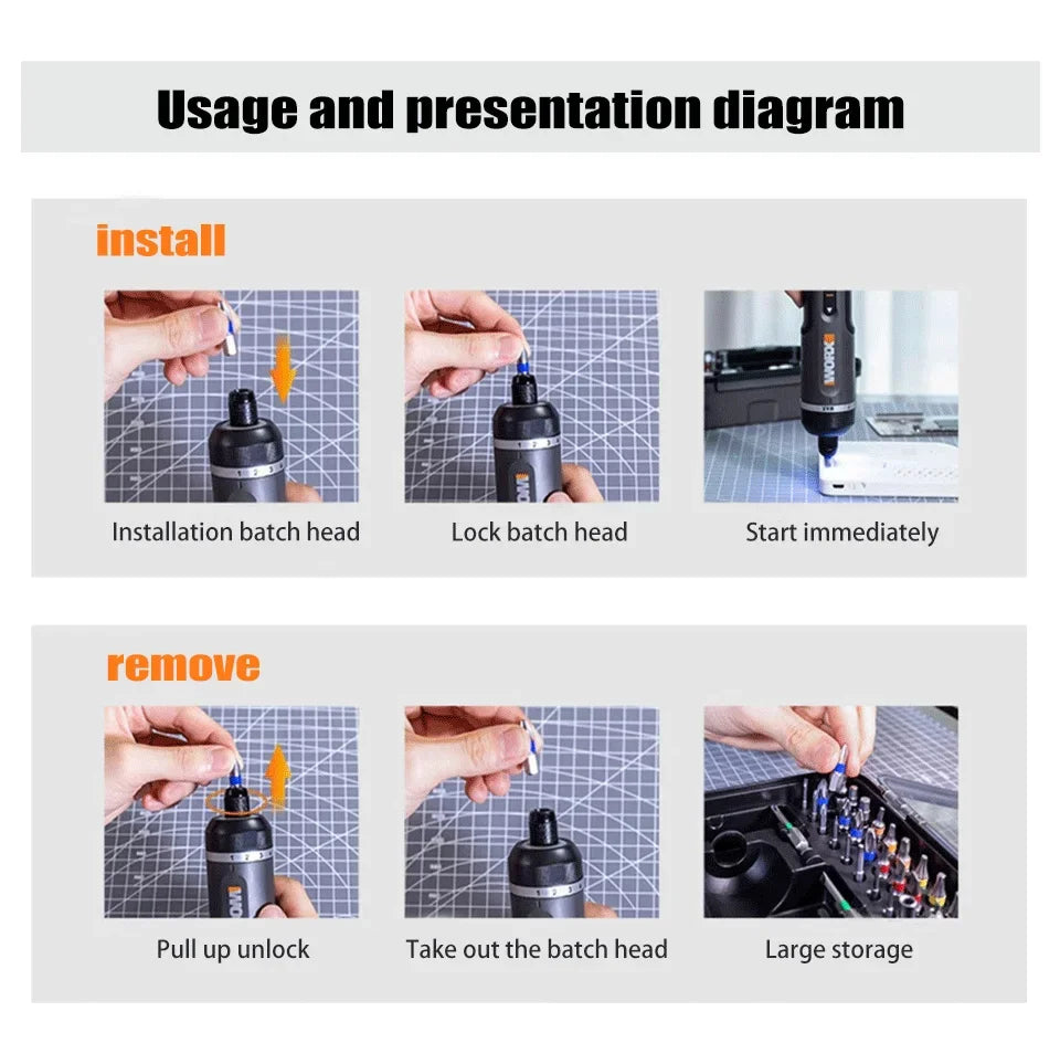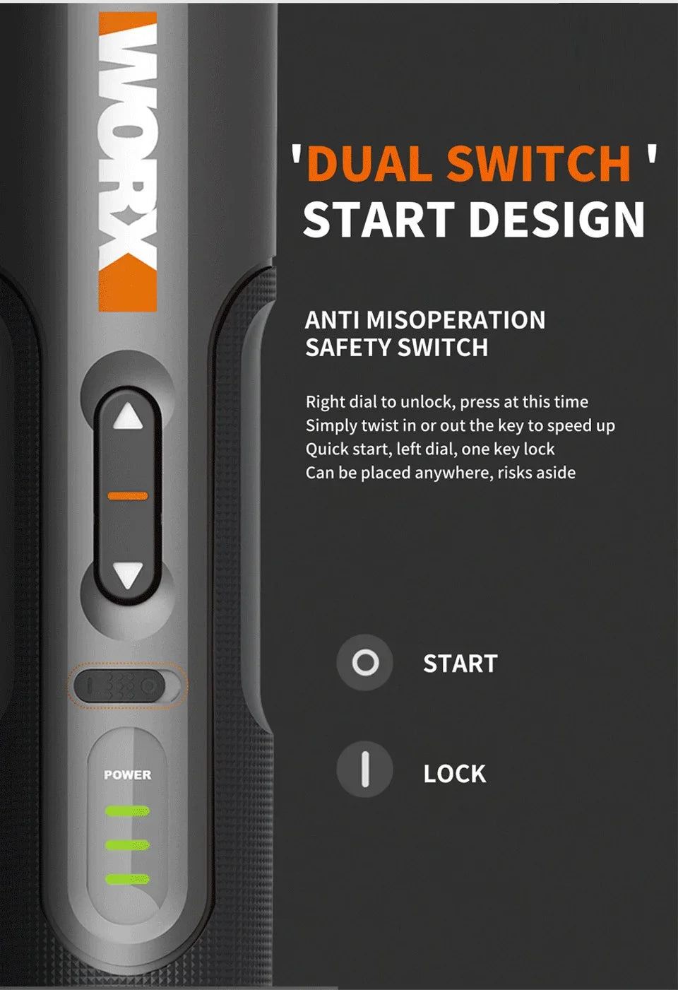 Worx WX242 Elektroschrauber-Set, intelligenter Akku-Bohrschrauber, Schraubendreher, USB-Ladegriff, 30-teiliges Set, Elektroschrauber