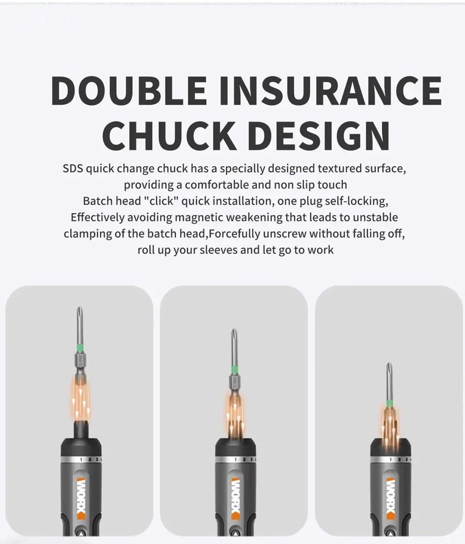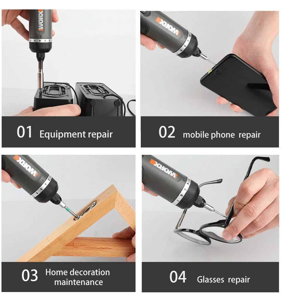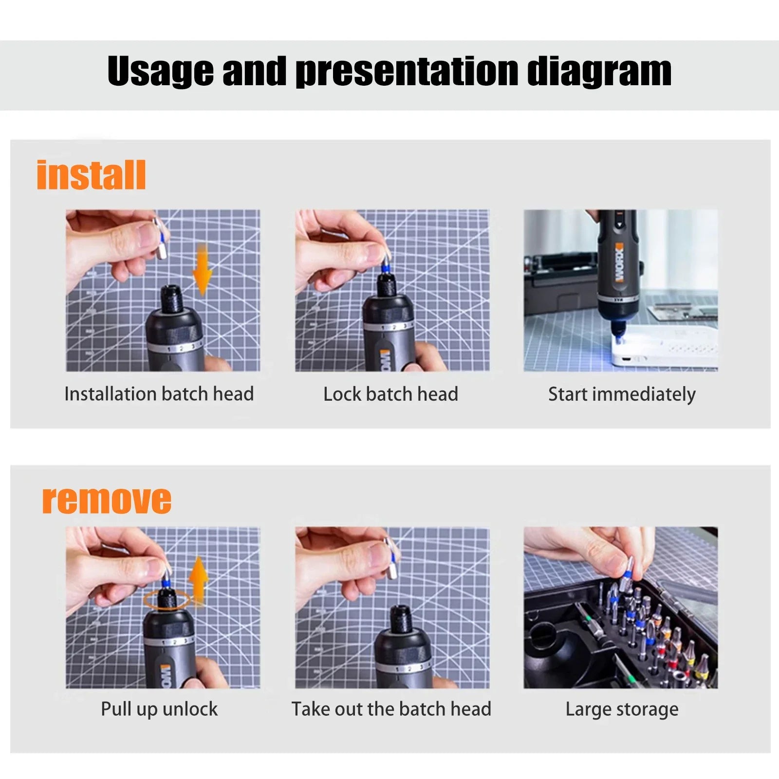 Worx WX242 Elektroschrauber-Set, intelligenter Akku-Bohrschrauber, Schraubendreher, USB-Ladegriff, 30-teiliges Set, Elektroschrauber