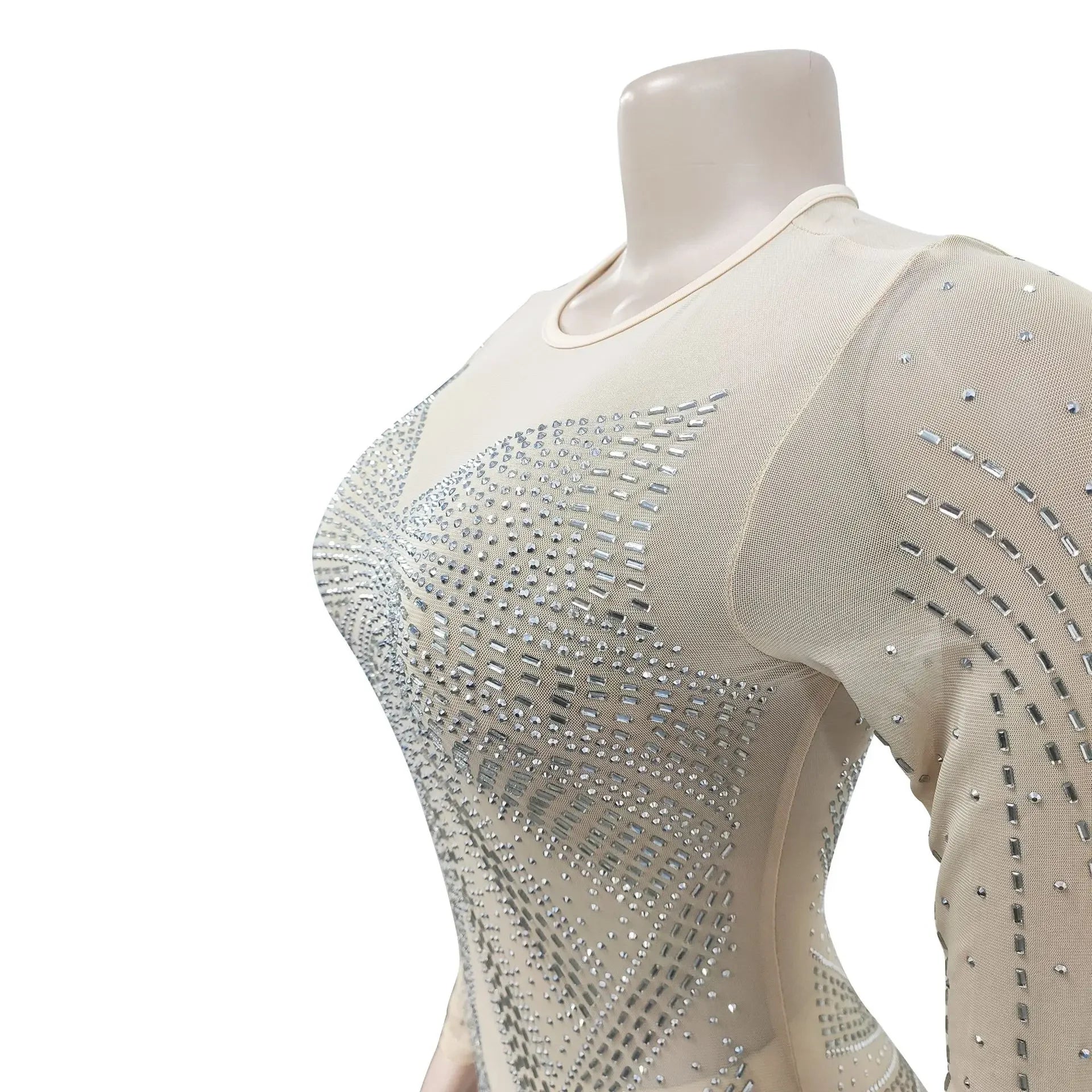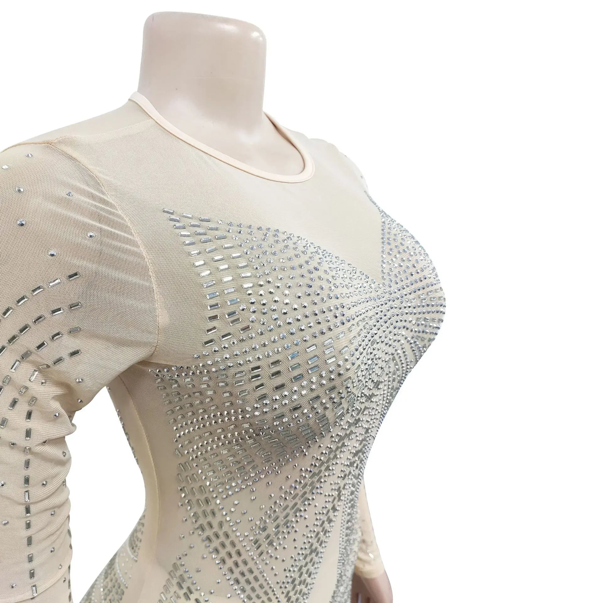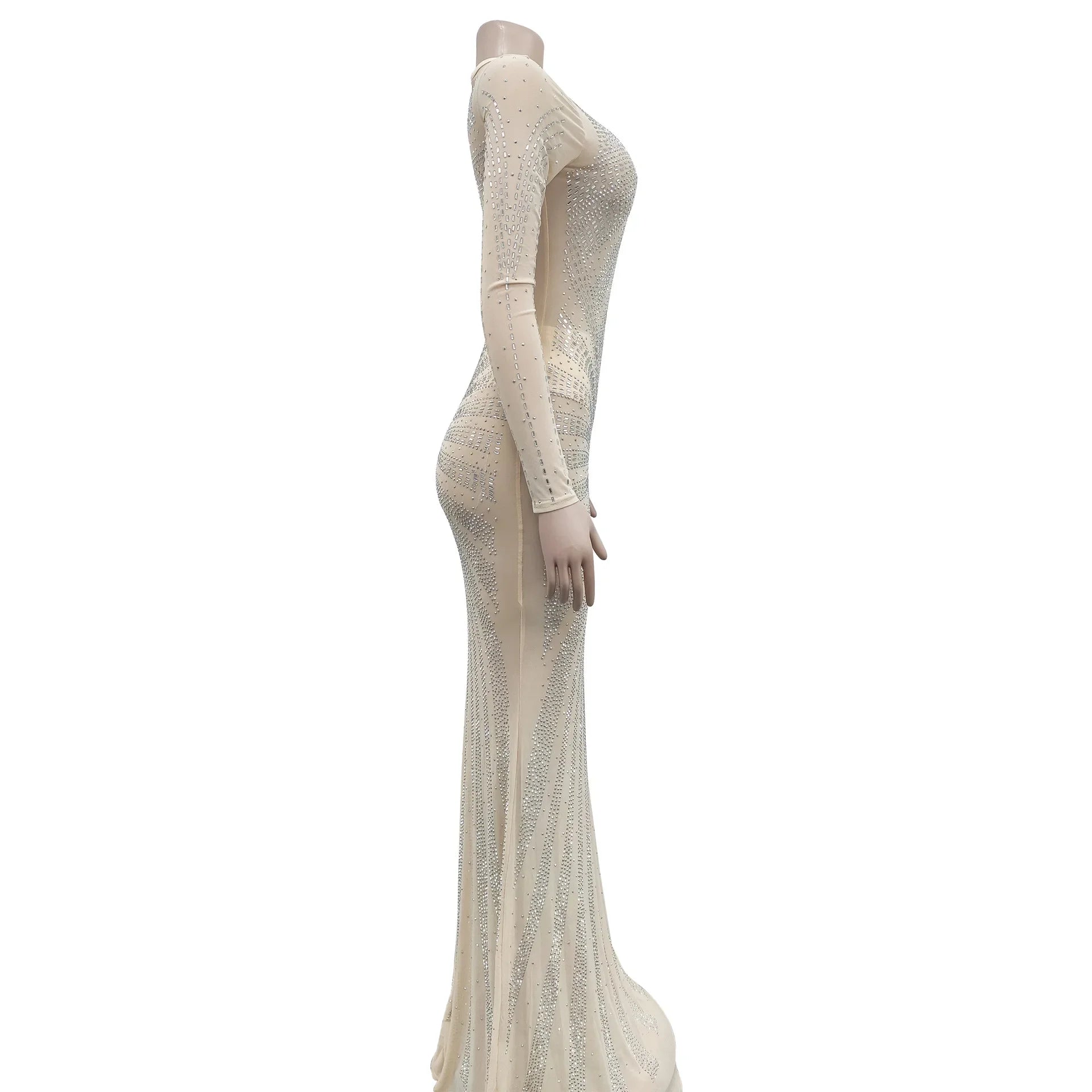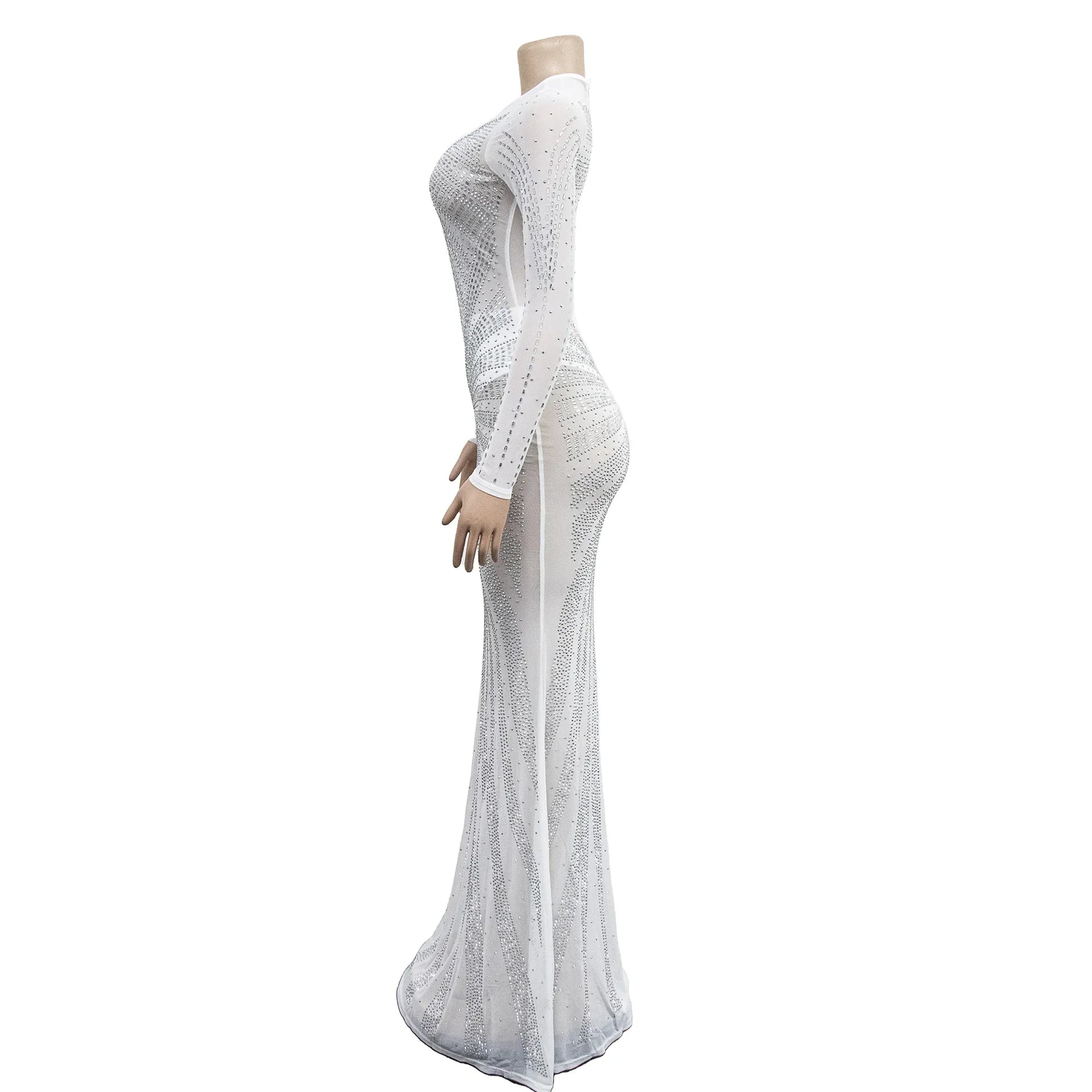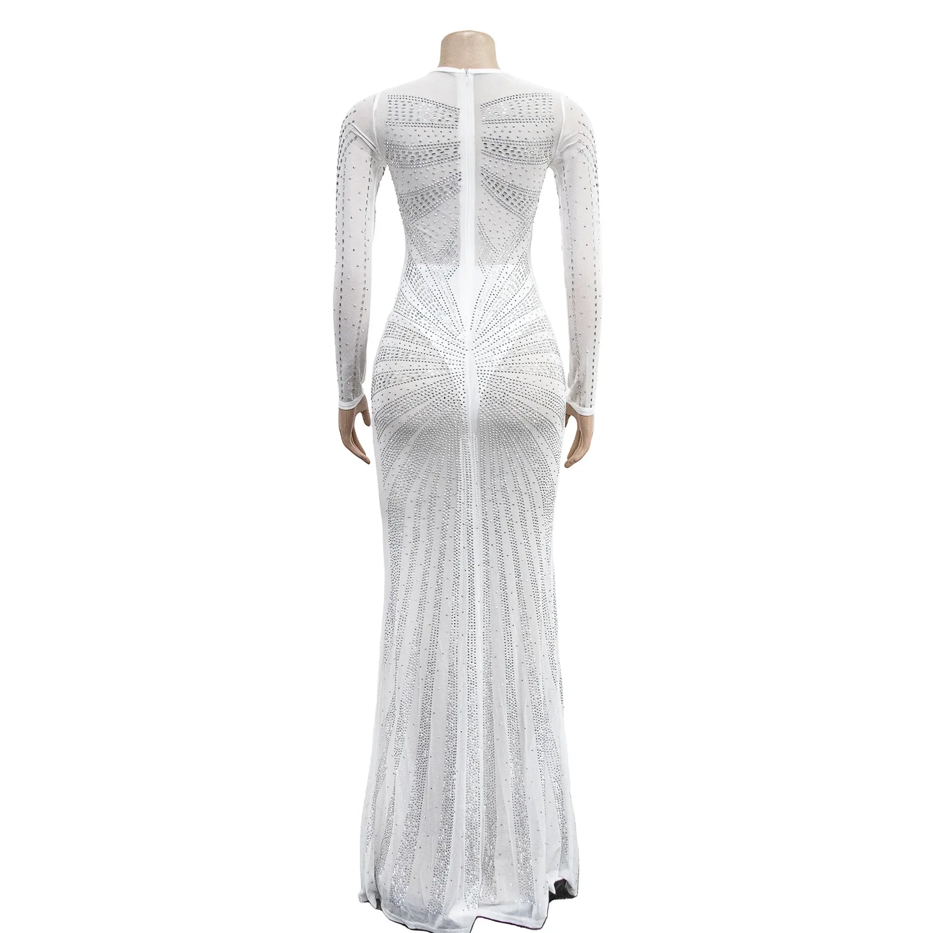 XIZOU Frauen Mesh Patchwork Diamanten Heißer Strass Bodenlangen Bodycon Meerjungfrau Maxi Kleid Sexy Party Abend Vestidos 2024