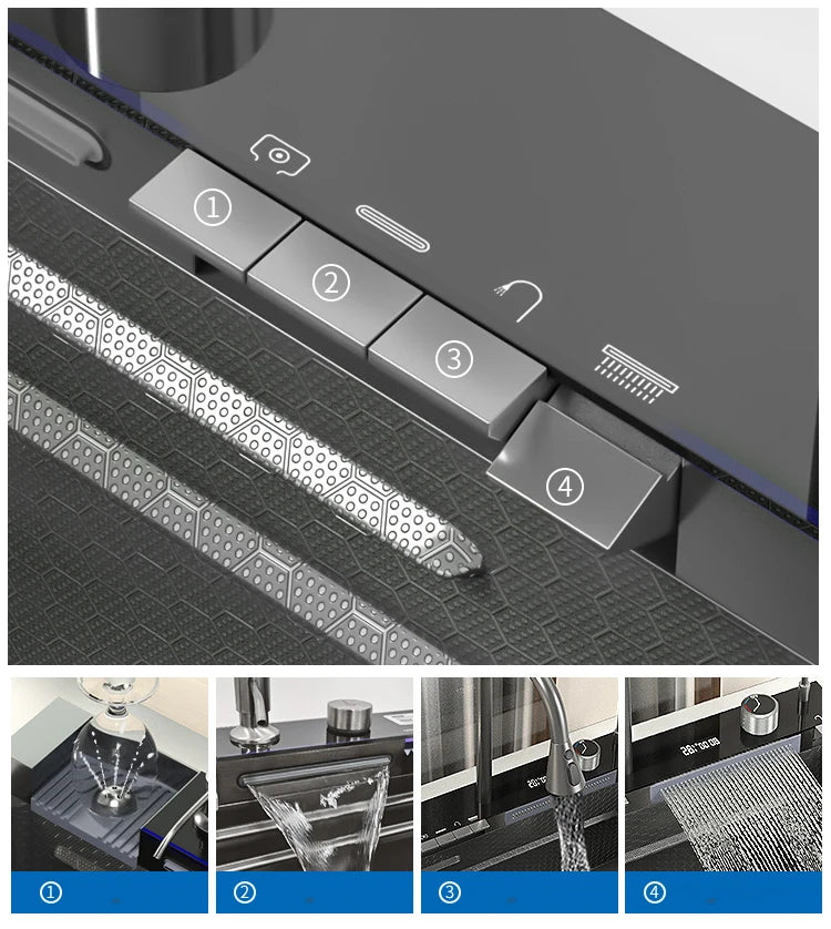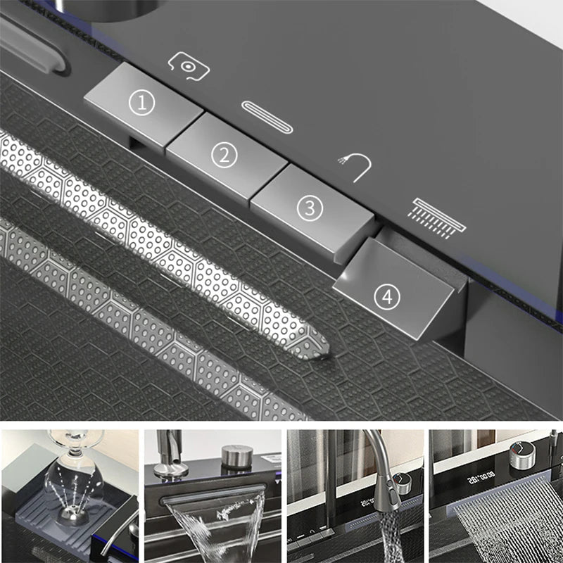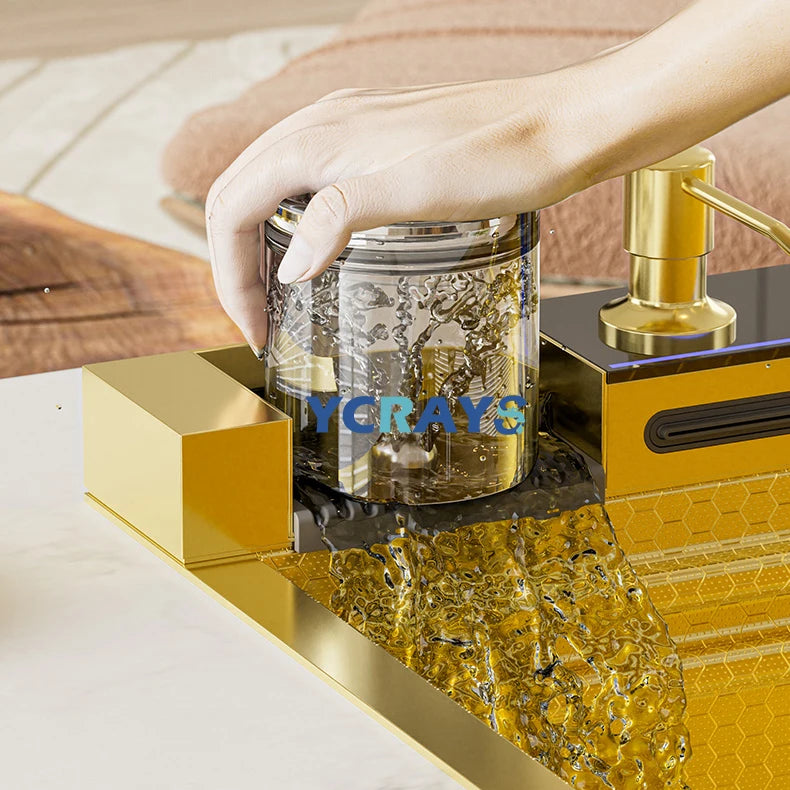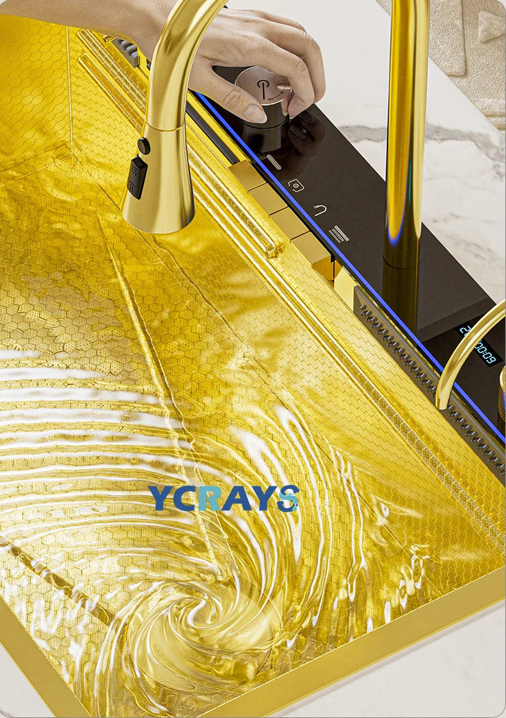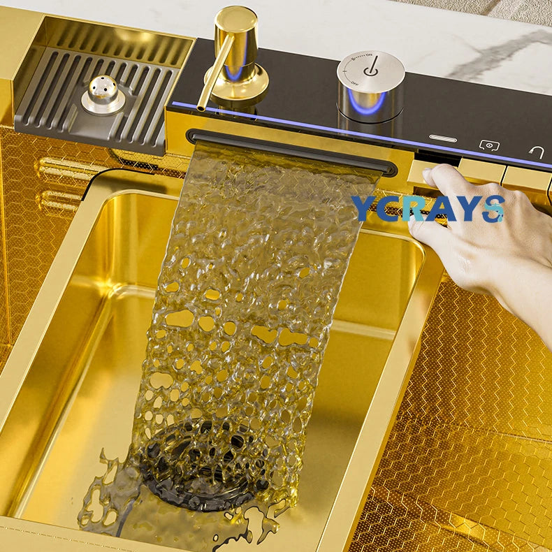YCRAYS White Nano Kitchen Sink Large Single Slot Waterfall Integrated Digital Display Faucet Soap Dispenser Cup Washer Pure Tap