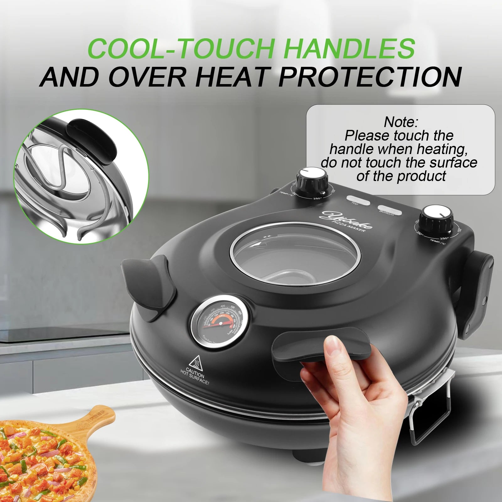 YIBAKE 12-Zoll-Elektro-Pizzaofen für den Innenbereich, antihaftbeschichtet, Keramikstein, erhitzt bis zu 420 ℃ für köstliches gebackenes Pizzeria-Set