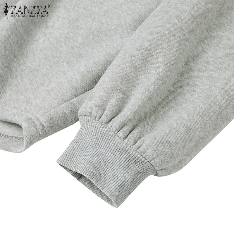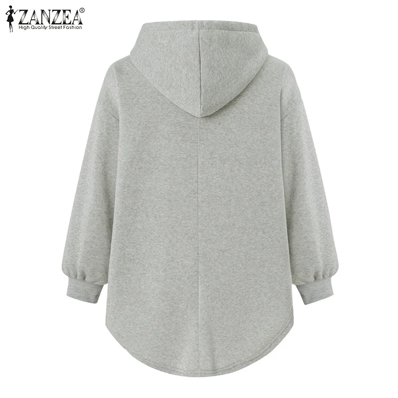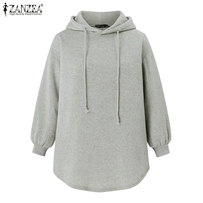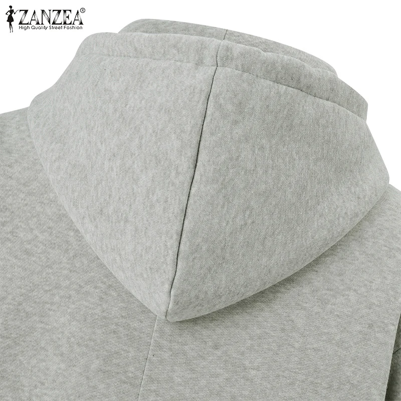 ZANZEA Plus Größe Sweatshirt 2025, Mode Herbst Winter Solide Frauen Warme Kapuze Tops Lose Beiläufige Pullover Langarm Hoodies
