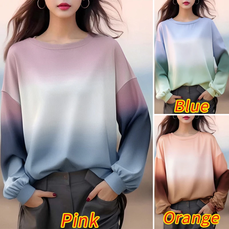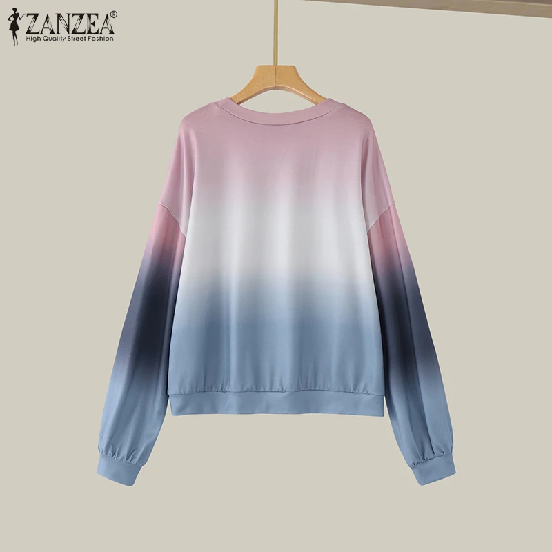 ZANZEA Plus Size Sweatshirts Women Long Sleeve Autumn Fashion Hoodies Gradient Color Round Neck Causal Loose Pullovers 2025 5XL