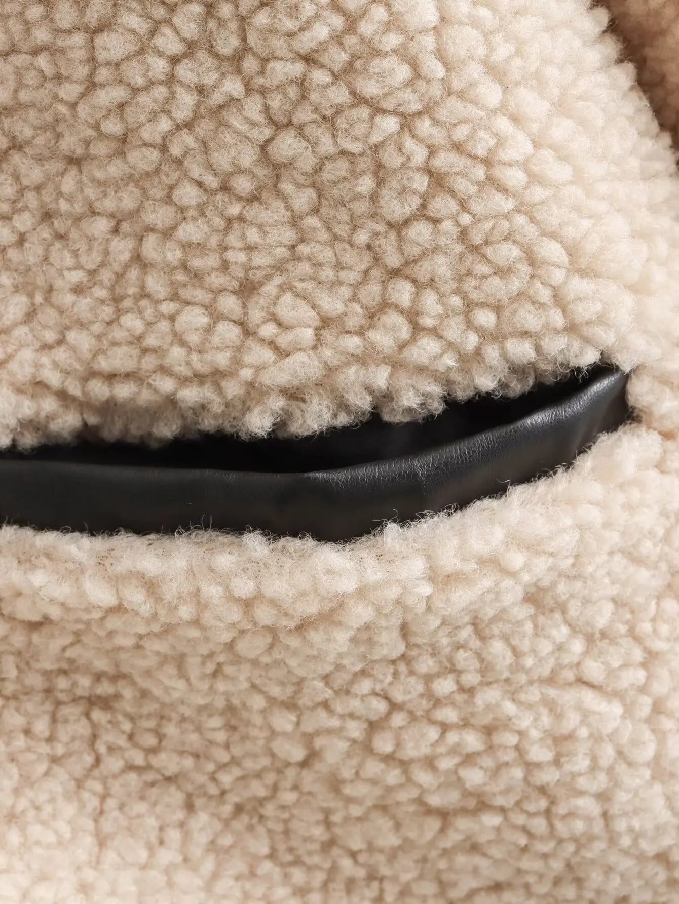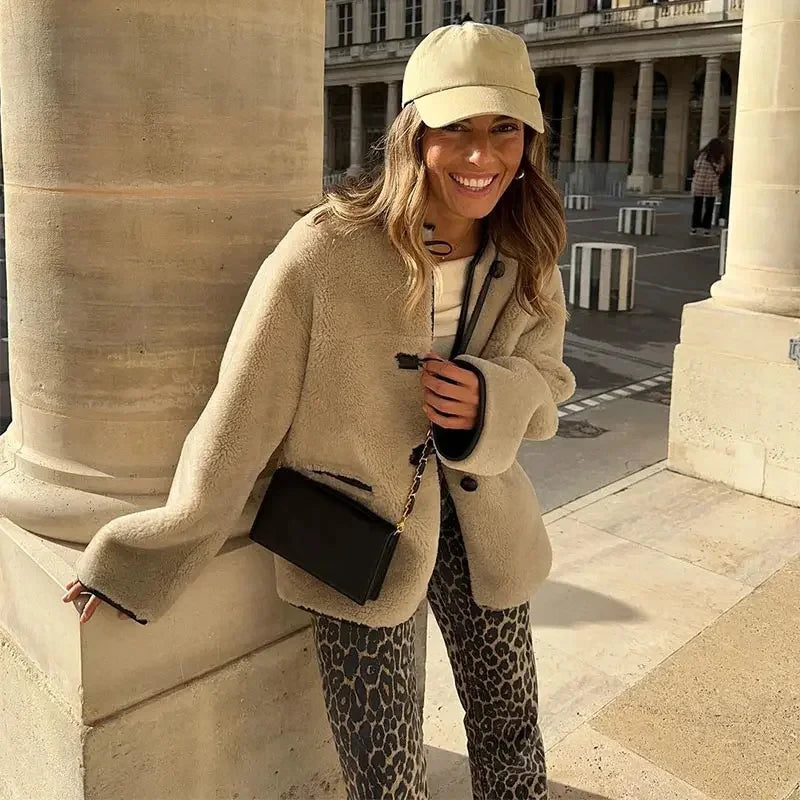 ZBZA Women's Faux Wool Jacket Loose Retro O-neck Single Breasted Long Sleeve Double Pocket Casual Overcoat Fall Winter Chic Coat