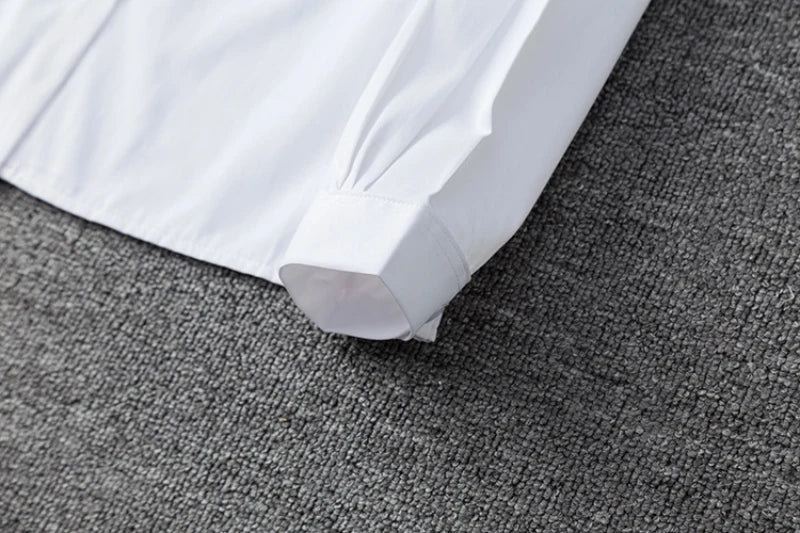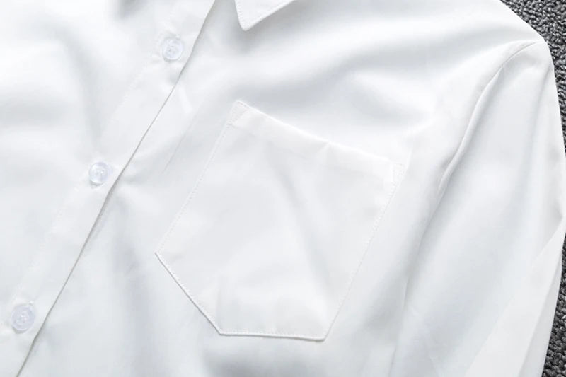 Zoki White Women Shirt Fashion Long Sleeve Casual Turn Down Collar Female Blouse Loose Pocket Button Office Ladies Elegant Tops
