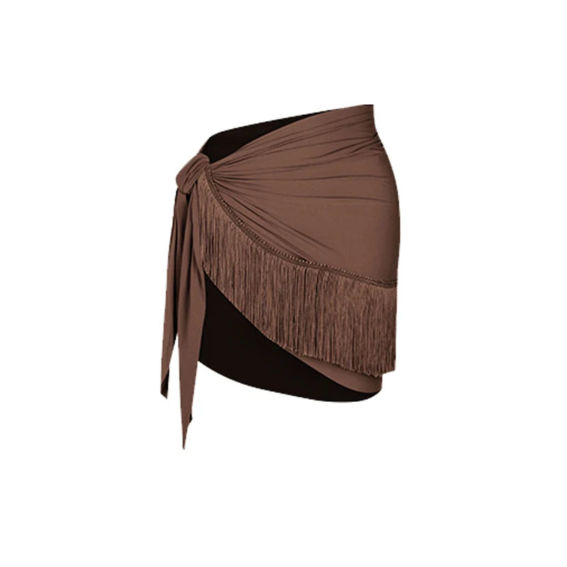 ZYM Off Shoulder Latin Dance Dress Women Long Sleeves Fringe Dress Adult Rumba Dance Practice Wear Performance Clothing DNV22221